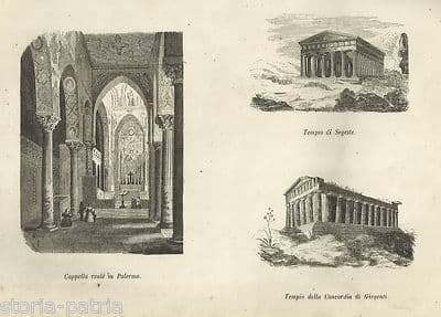 Sicilia, Palermo, Cappella Reale, Tempio Di Girgenti, Tempio Di Segeste Stampa Dell'800
