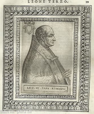 Storia Del Papato: Ritratto Di Papa Leone III, Antica Incisione