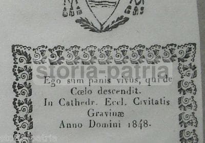 Puglia, Gravina, Canonico Pietro Bartilomo, Araldica, Stemma, Antica Incisione, 1848