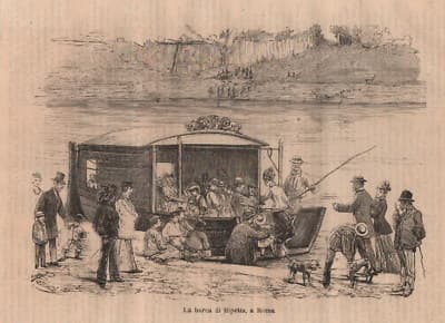 Roma Animata, Veduta Folklorica Del Lungotevere E La Barca Di Ripetta. Stampa Decorativa