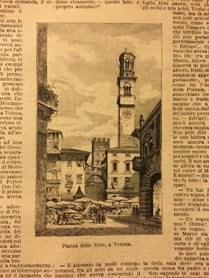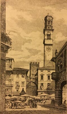 Veneto, Verona: Animata Piazza Delle Erbe. Antica Veduta, Stampa Da Collezione