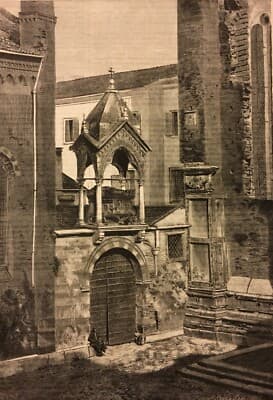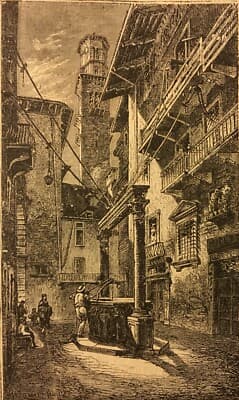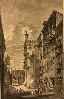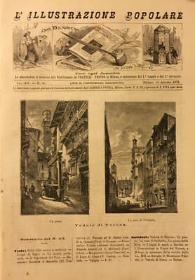 Veneto, Verona: Due Vedute Architettoniche Con Pozzo E Casa Di Giulietta. Antica Stampa Xilografica