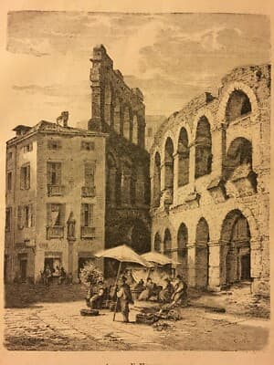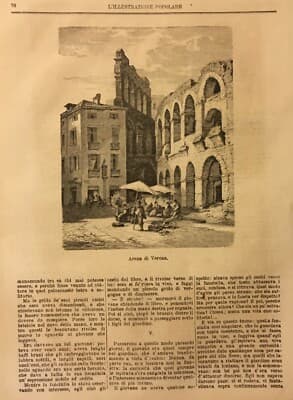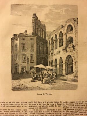 Arena Di Verona, Veduta Animata Con Venditori Ambulanti, Xilografia 1877