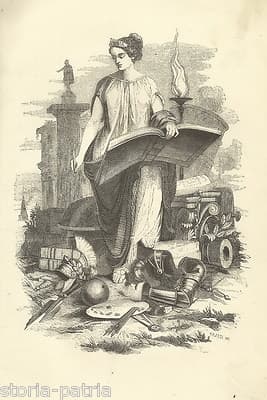 Allegoria Delle Belle Arti, Pittura, Architettura E Militaria, Incisione Di Vajani (1856 Ca.)