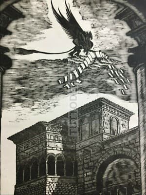 Perugia, Umbria: L'Antica Porta Etrusca. Allegorica Incisione Di Bruno Da Osimo