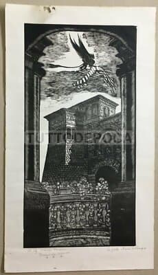Incisione Xilografica "Le Lacrime Dell'Autunno", Francesco Gamba