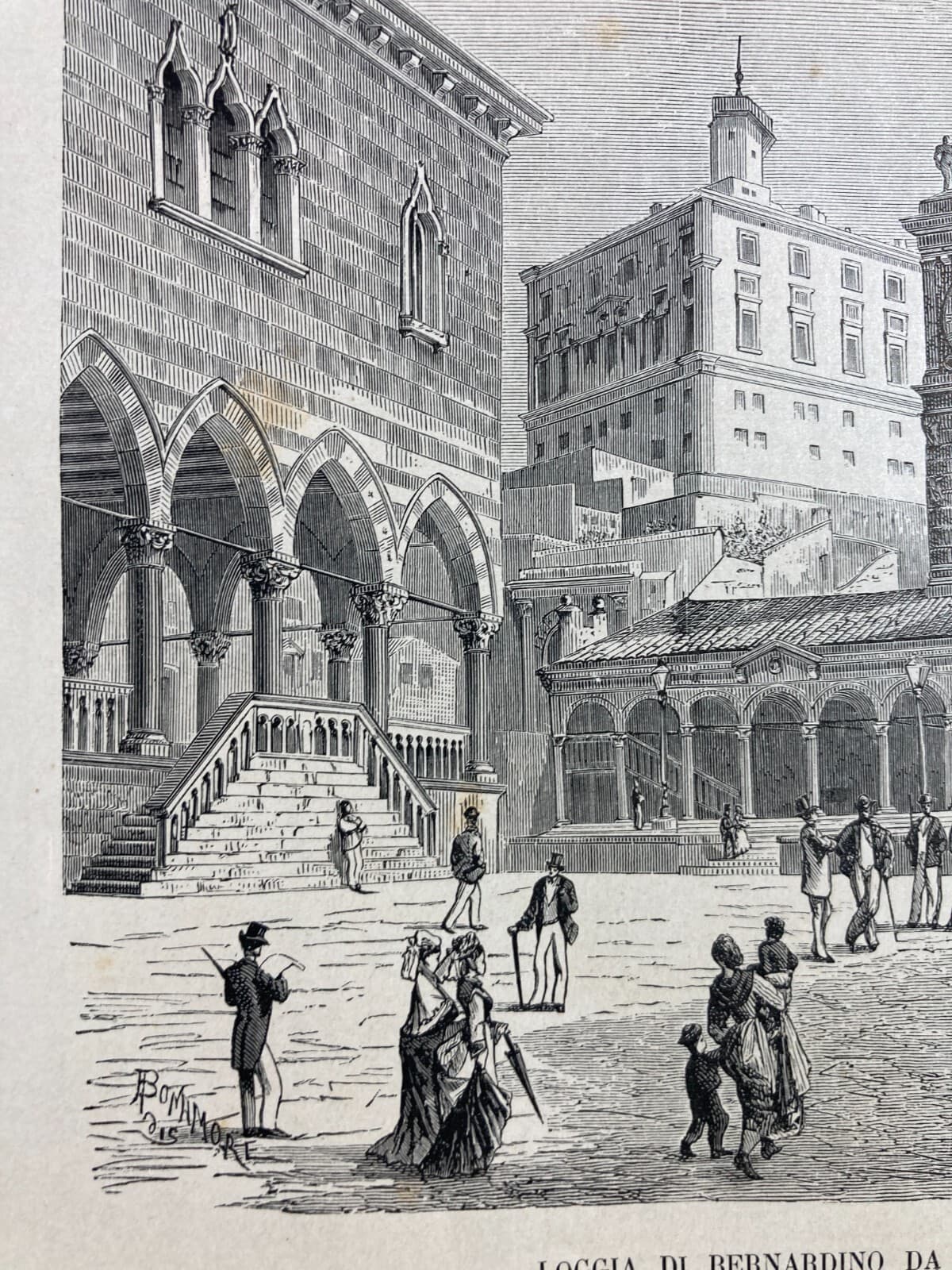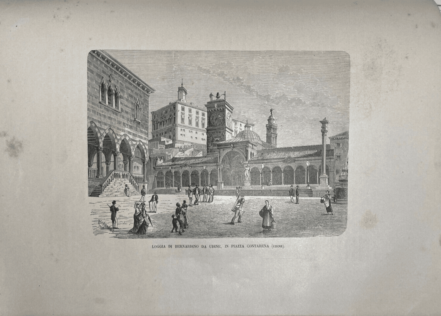Udine: Piazza Contarena, Architettura Del Loggiato In Una Veduta Animata d'Epoca