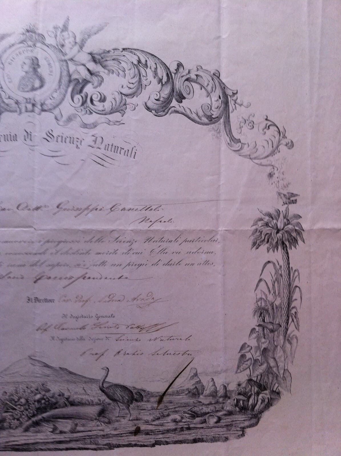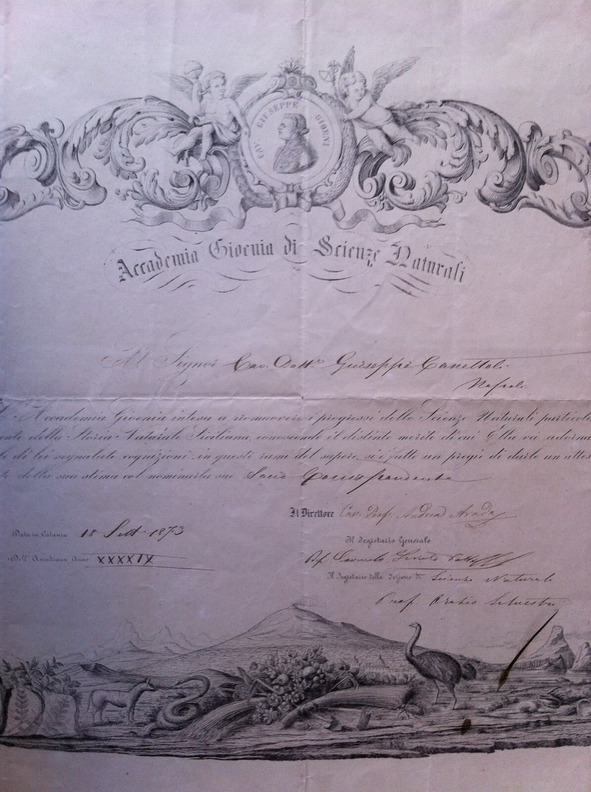 1873 Diploma Accademia Gioenia Di Scienze Naturali, Catania