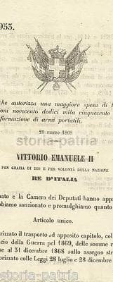 Giuridica, Economia, Militaria: Spese Per Armamento, Ministero Della Guerra, 1869