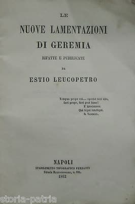 Nuove Lamentazioni Di Geremia: Edizione Di Estio Leucopetro (Napoli, 1862)