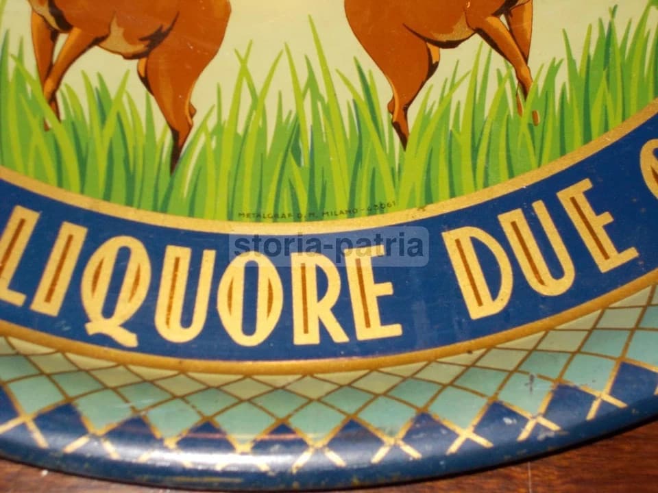Distilleria Pedroni: Vassoio Pubblicitario Elisir China Due Cervi Con Araldica