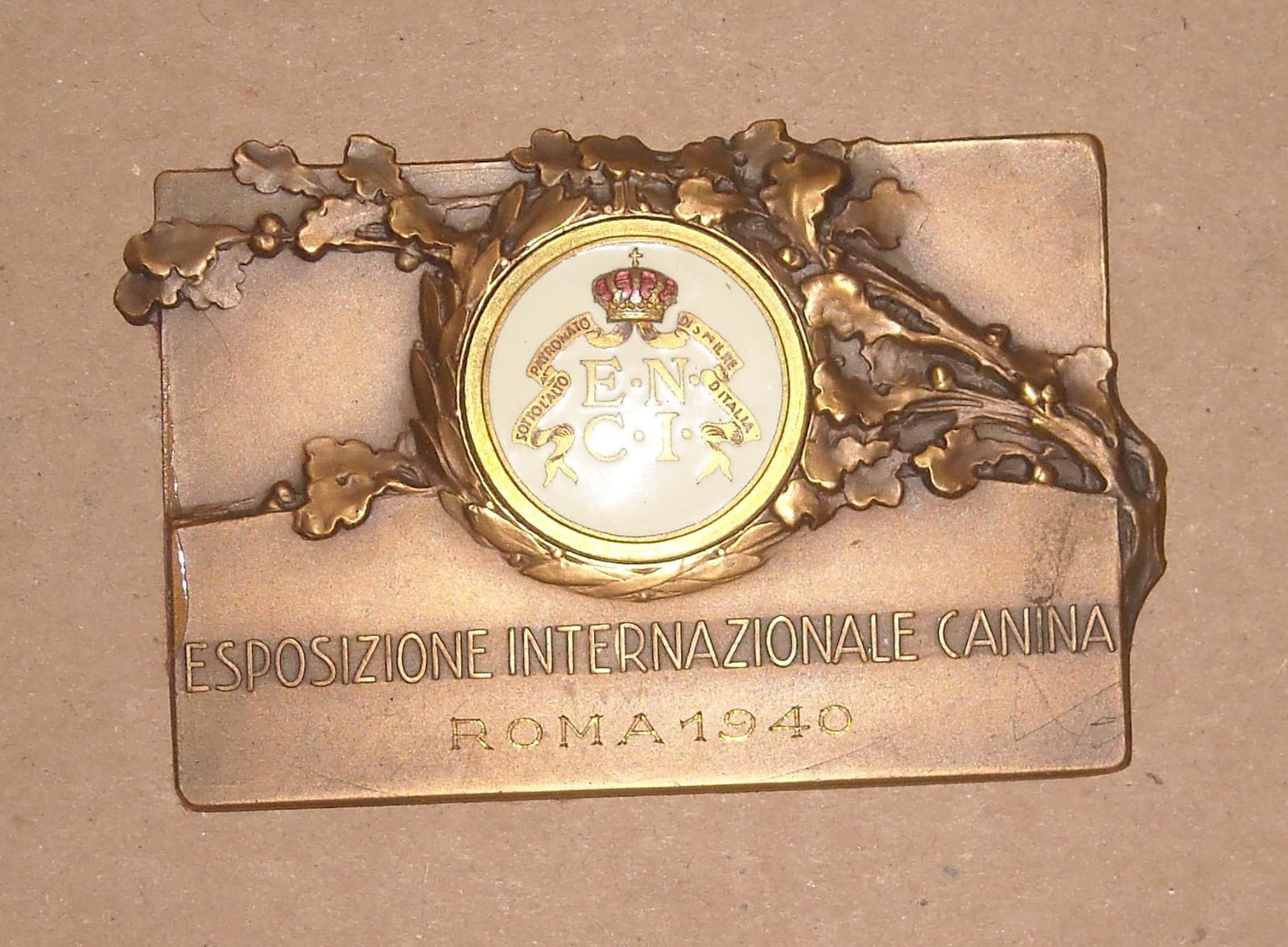 Placca Metallica Esposizione Internazionale Canina Roma 1940, Enci Con Smalti Sabaudi