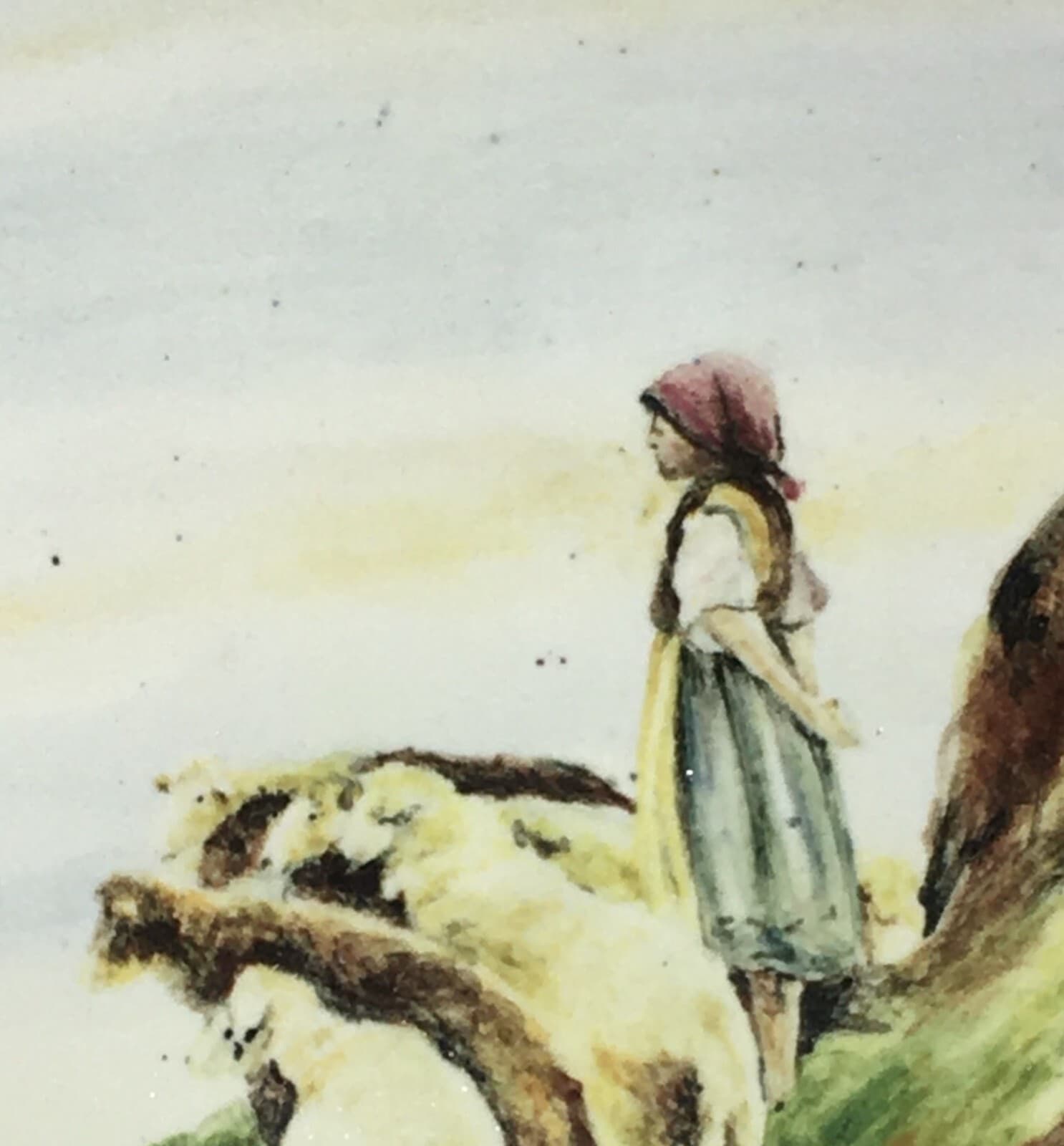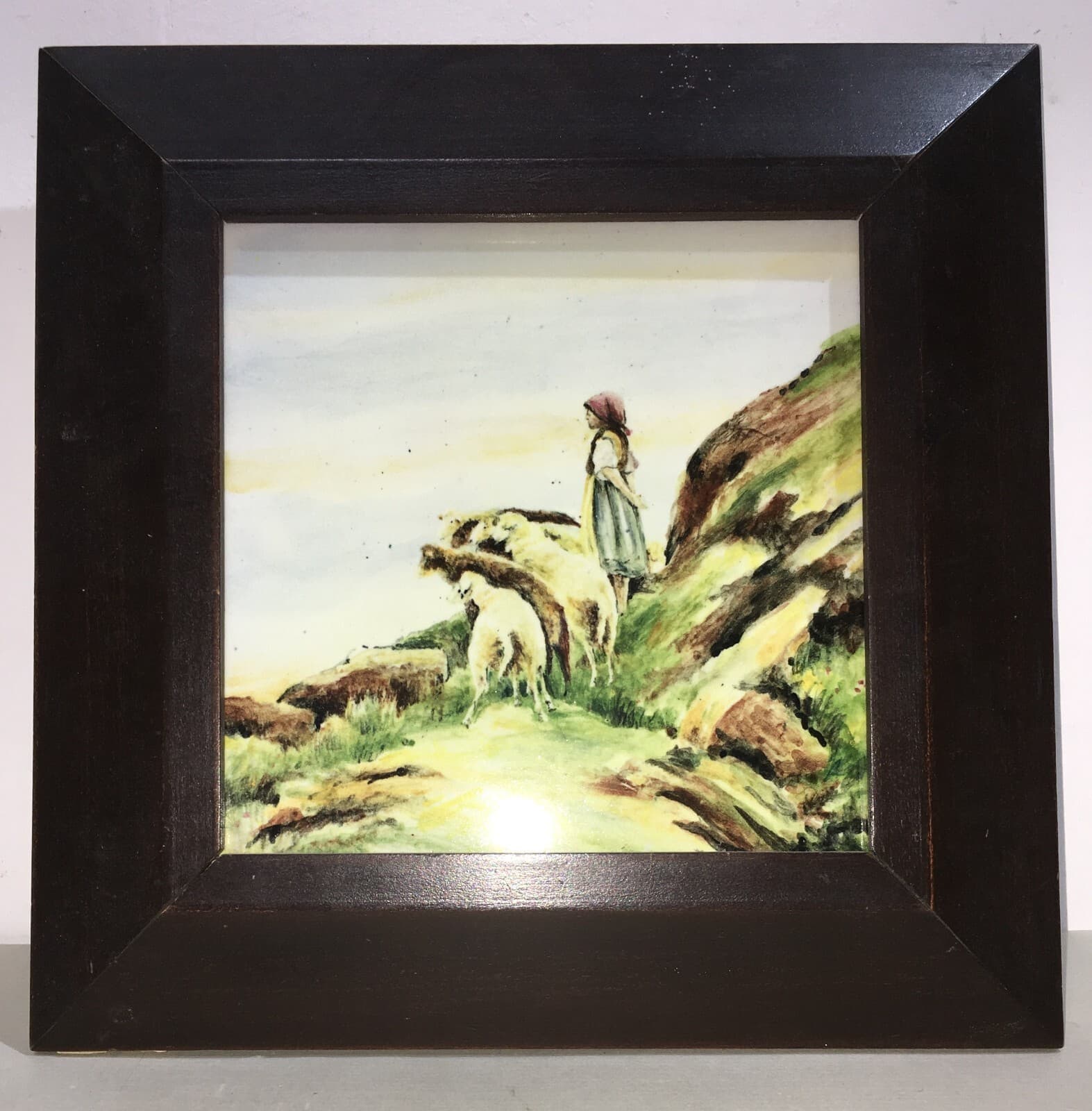 Veduta Bucolica Con Pastorella E Pecore Mattonella Dipinta Abruzzo