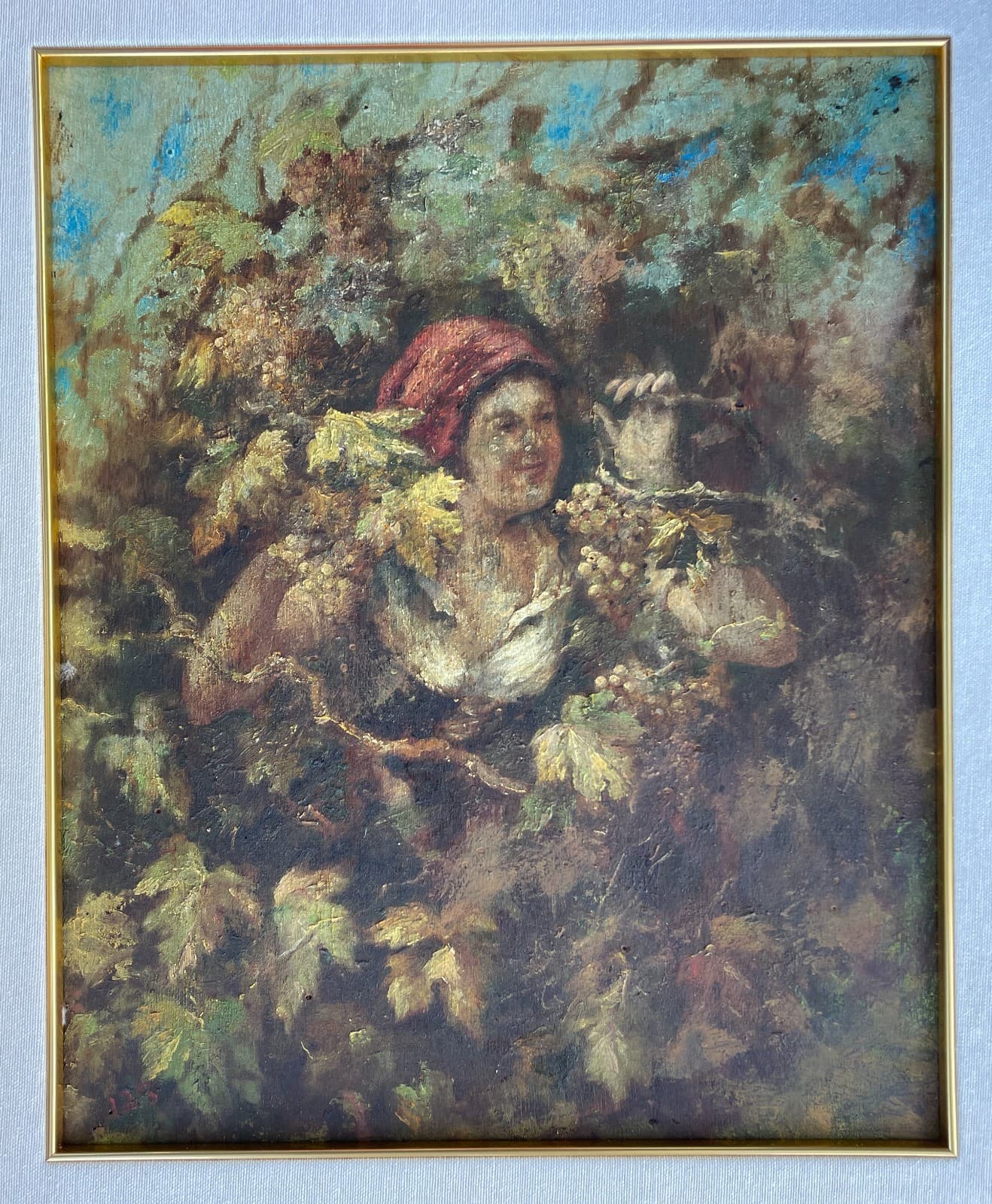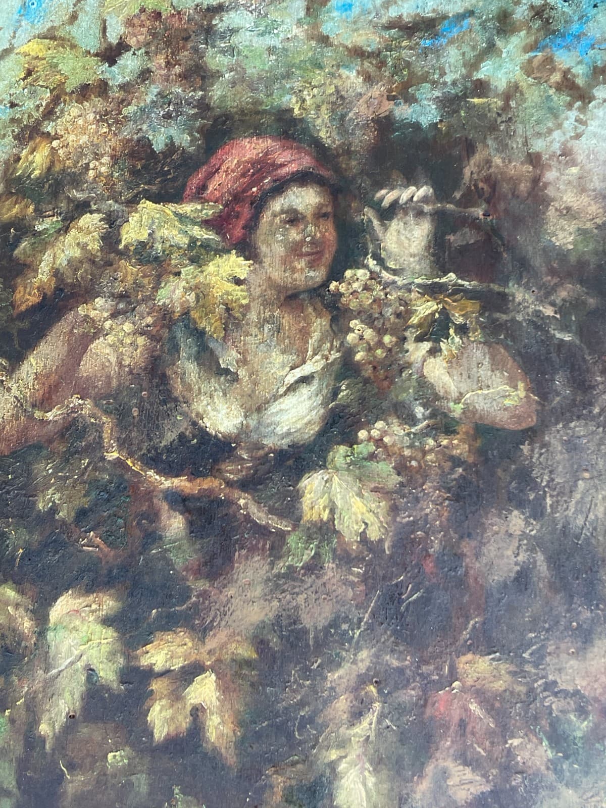 Scena Con Vendemmiatrice, Uva E Vino. Dipinto d'Epoca (Napoli / Abruzzo)