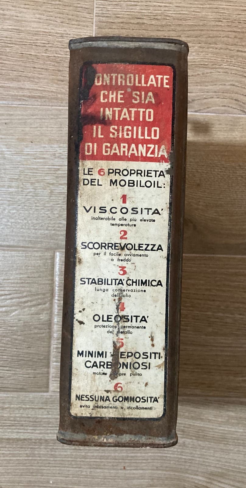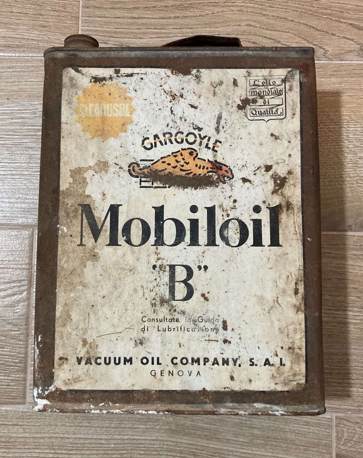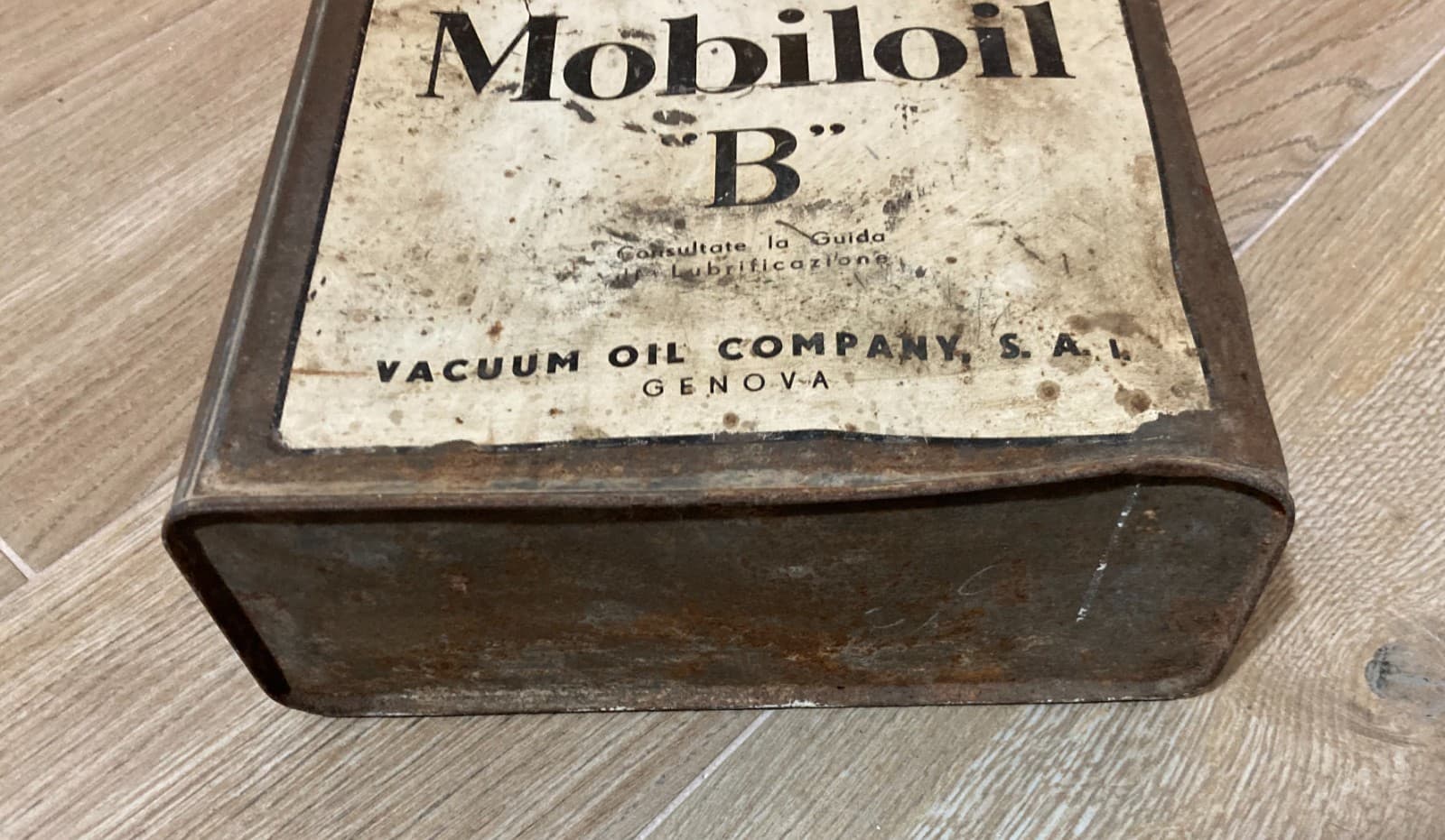 Motori, Lubrificanti: Mobiloil "B", Genova, Vacuum Oil Company. Latta Pubblicitaria.