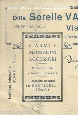 Napoli, Caccia, Armeria Varriale, Antica Pubblicitaria, Storia Postale d'Epoca, 1923