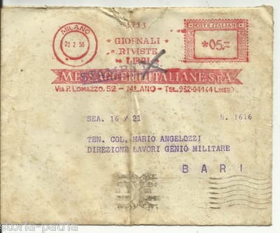 Puglia, Bari: Genio Militare, Messaggerie Italiane, Busta Viaggiata Per Posta, 1956