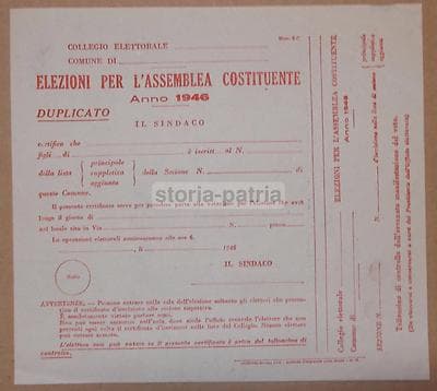 Politica, Elezioni, Assemblea Costituente, 1946, Certificato d'Epoca