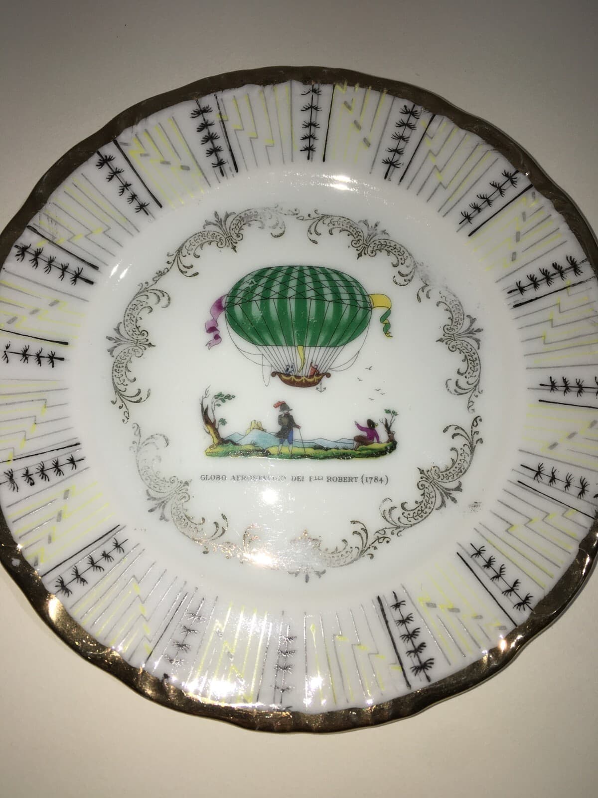 Piatto Decorativo Fratelli Robert, Volo Globo Aerostatico E Mongolfiere