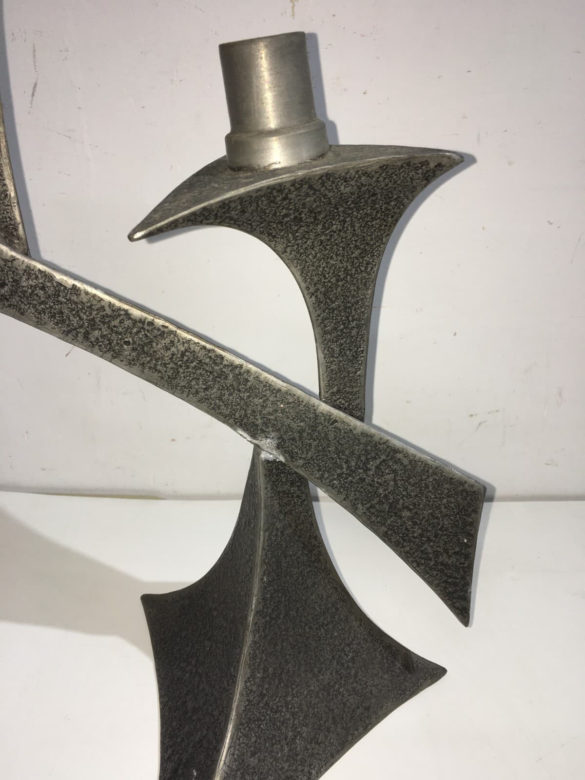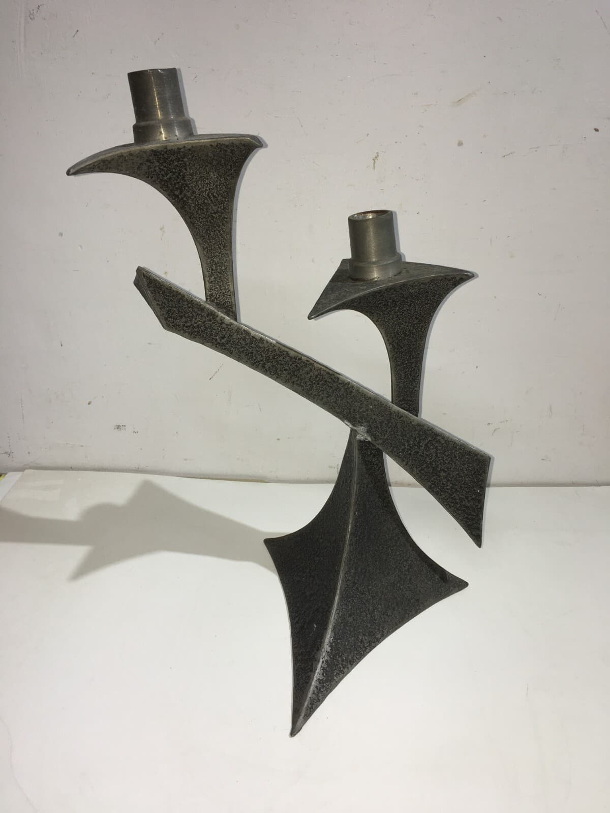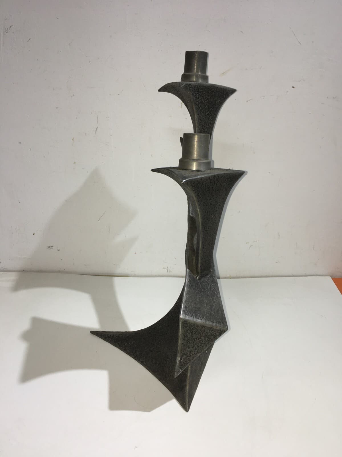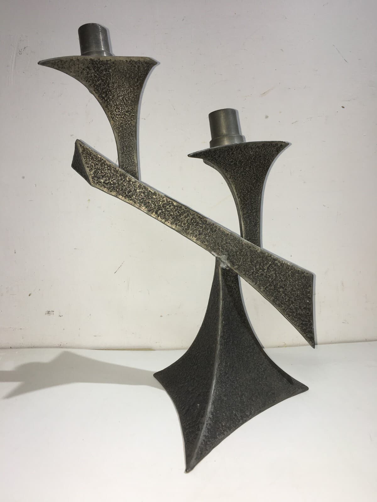 Candelabro In Peltro Stile Modernariato, Metà Del XX Secolo