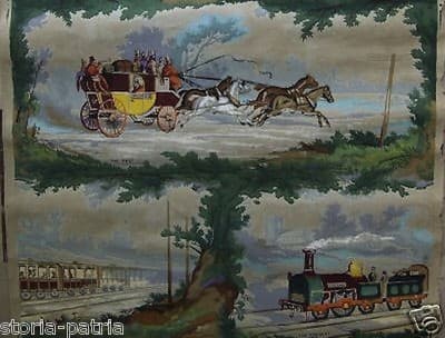 Trasporti, Carrozza, Treno, Antica Carta Da Parato, Paper Paint Originale d'Epoca