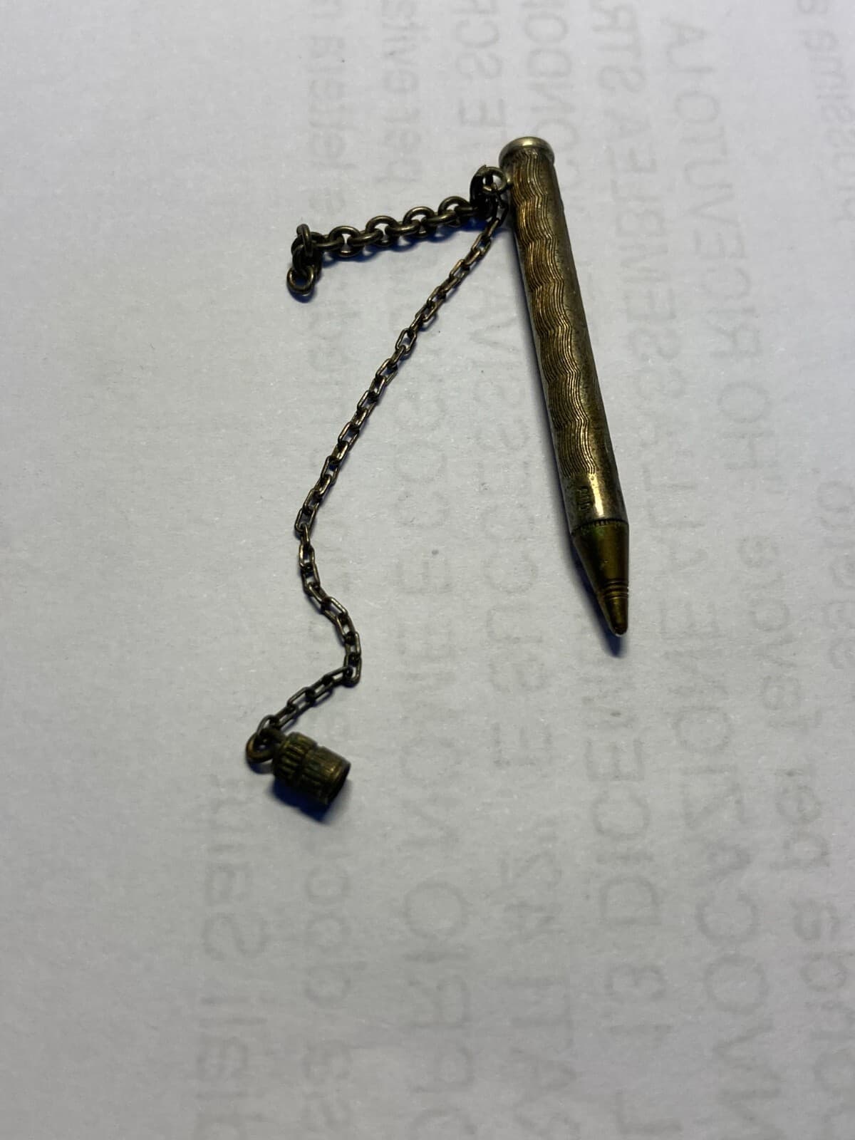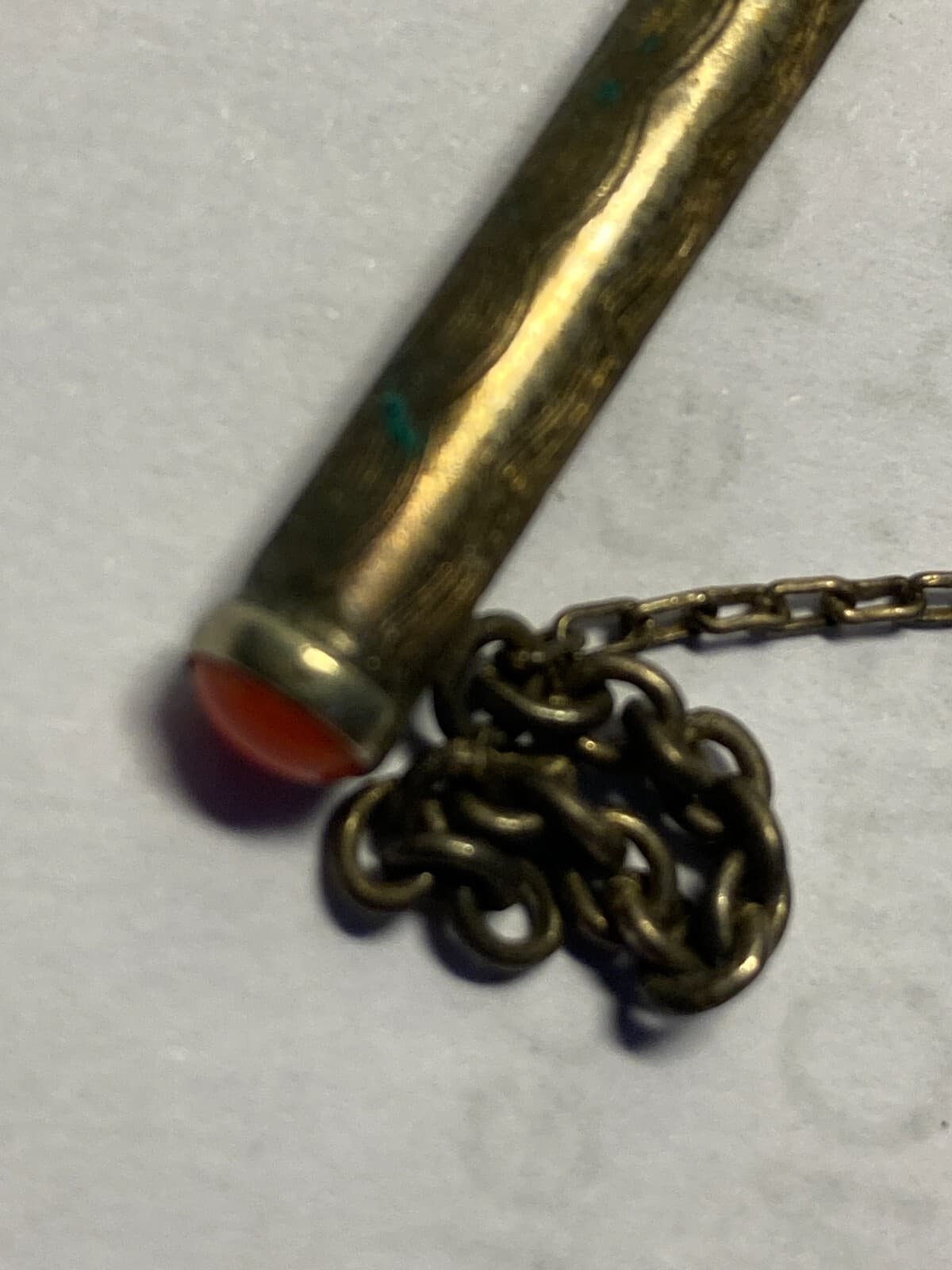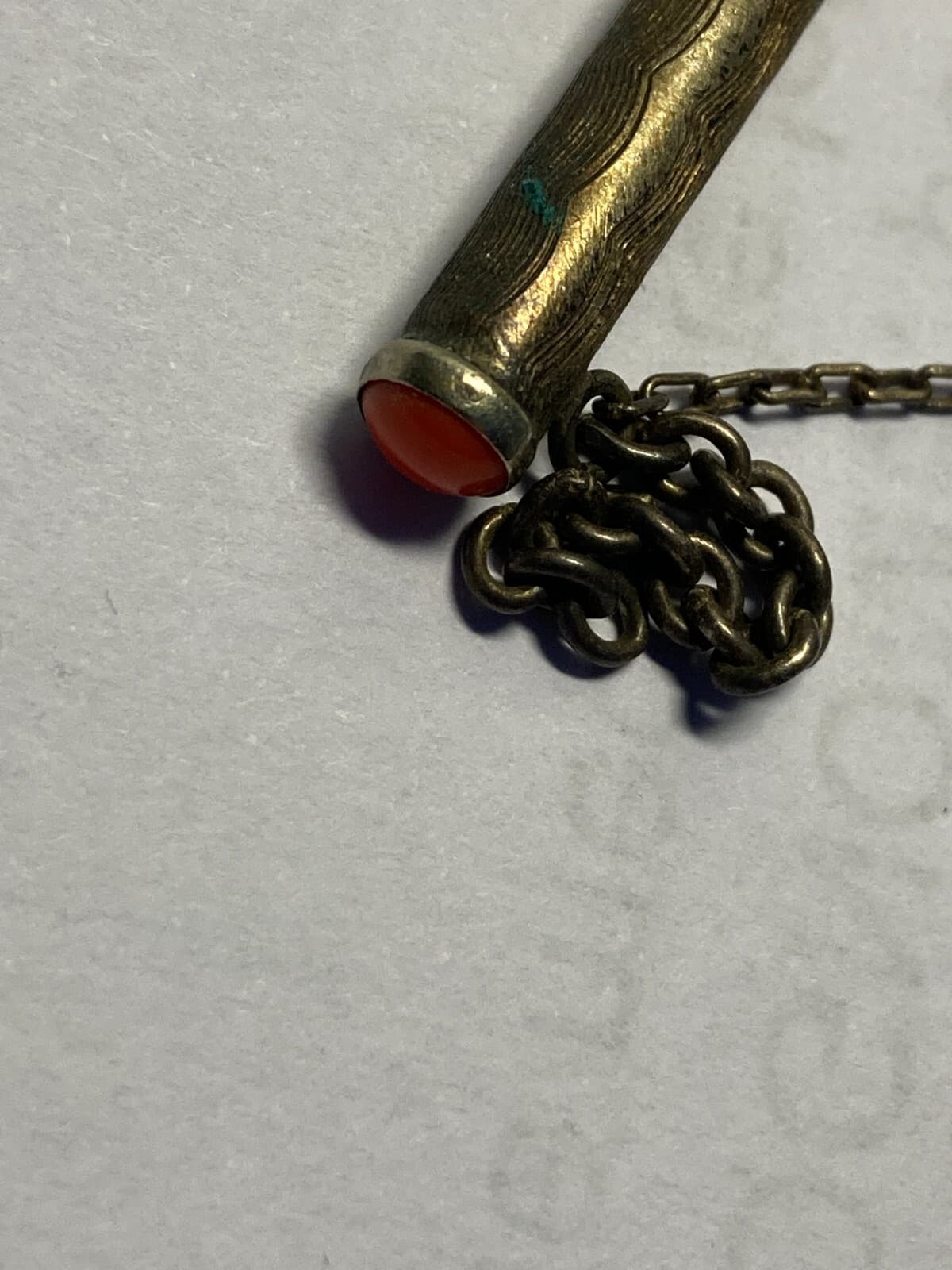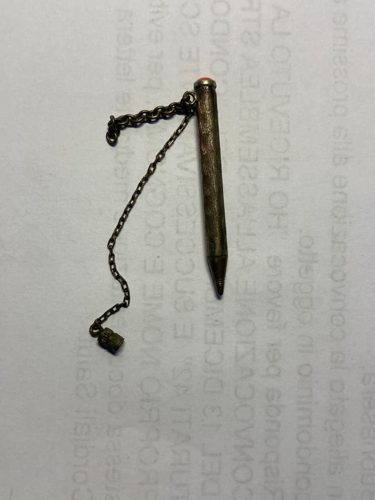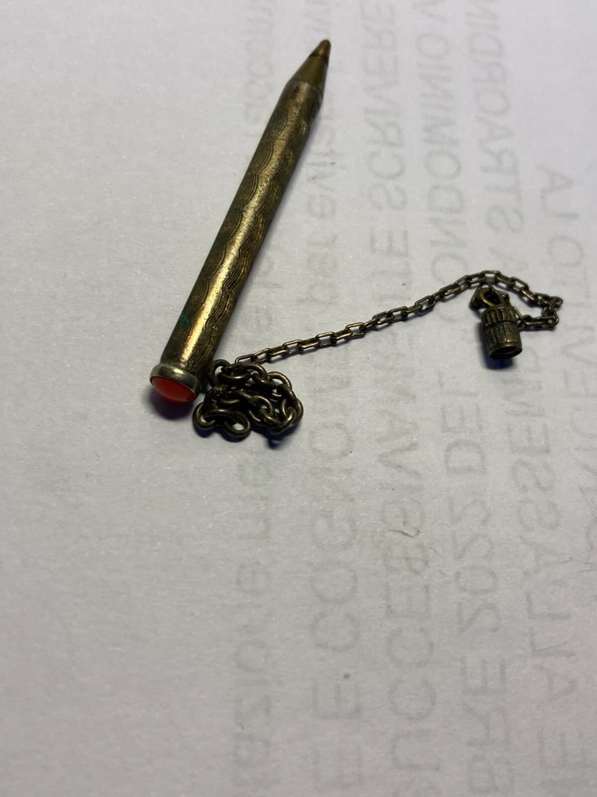 Mini Penna Biro d'Epoca In Metallo Argentato Con Corallo