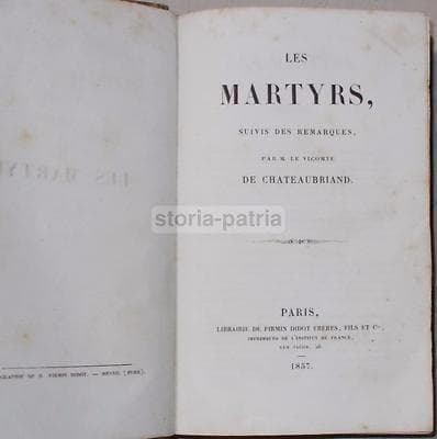 Chateaubriand, I Martiri, Antica Edizione Francese, Parigi, 1857