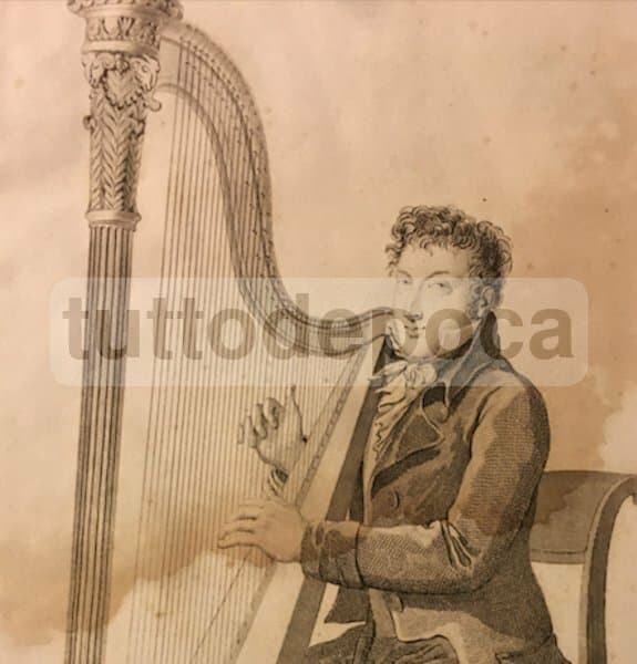 Arpista, Incisione Originale All'Acquaforte Del XIX Secolo