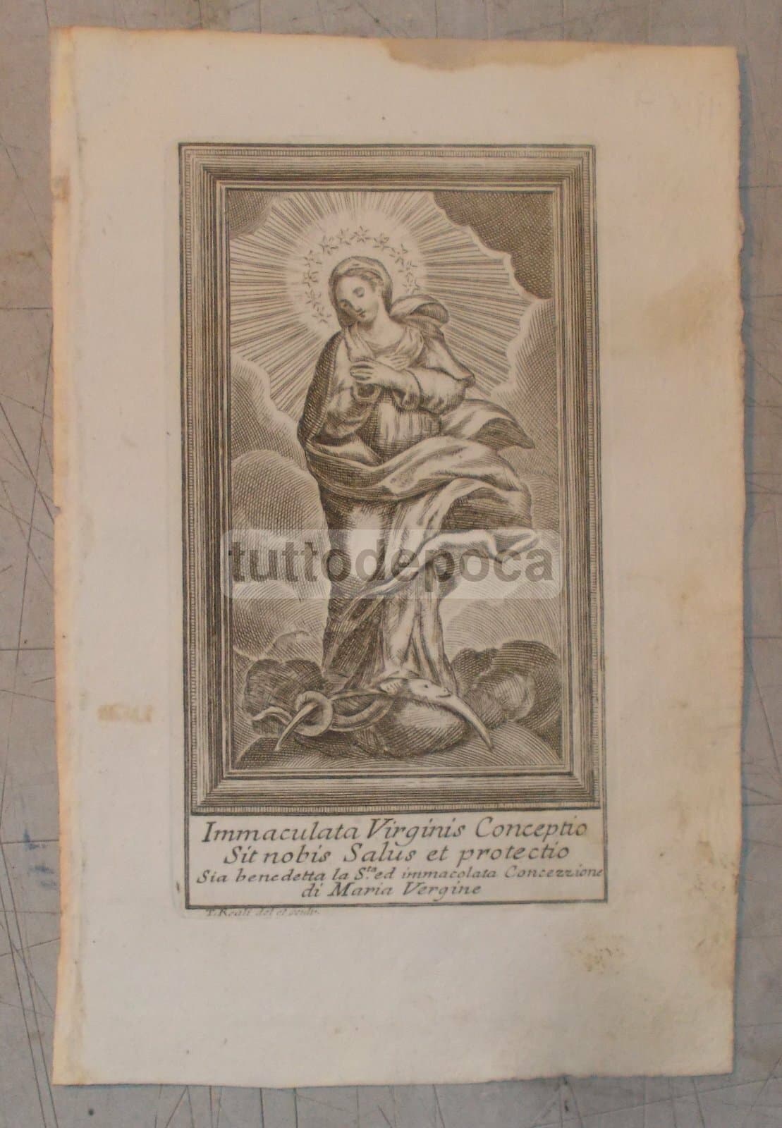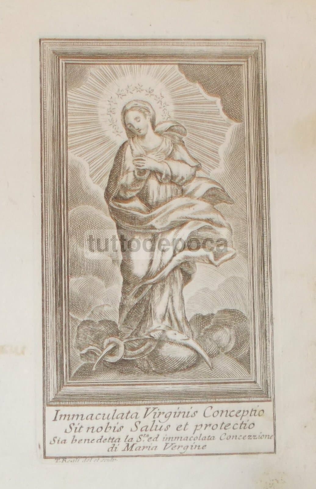 Arte Antica Stampa Popolare Devozionale: Immacolata Concezione Incisore T. Reali