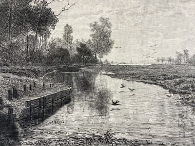 Piemonte, Torino, Fiume Sangone. Artista Ernesto Bertea, Incisore Celestino Turletti. Antica Incisione All'Acquaforte