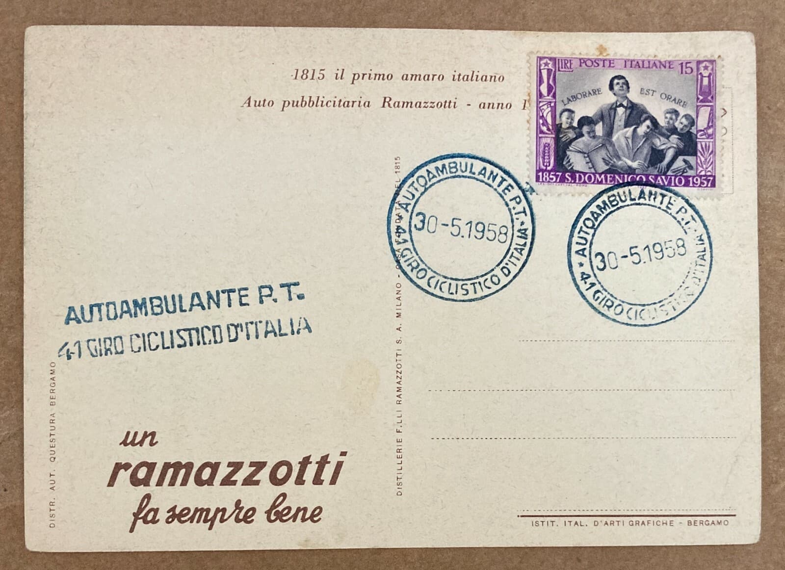 Ciclismo Giro Ciclistico d'Italia Autoambulante Pubblicitaria Ramazzotti 1958