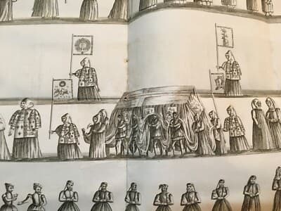 Antica Grande Incisione: Funerali Della Regina Elisabetta (1502)