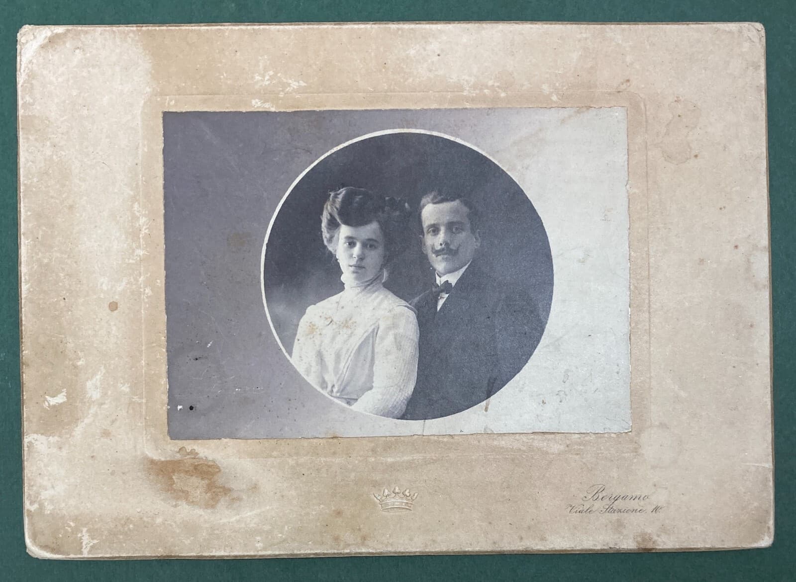 Ritratto Di Coppia, Antica Fotografia Originale, Bergamo