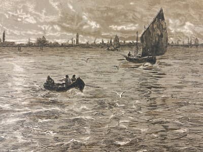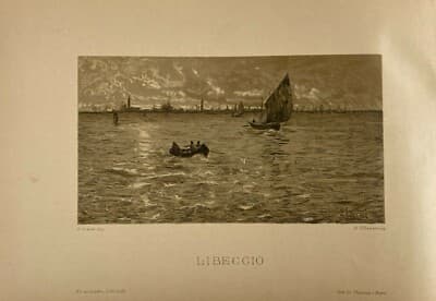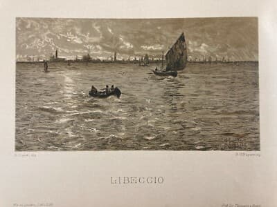 Guglielmo Ciardi: Veduta Veneta Libeccio, Antica Litografia Rapetti