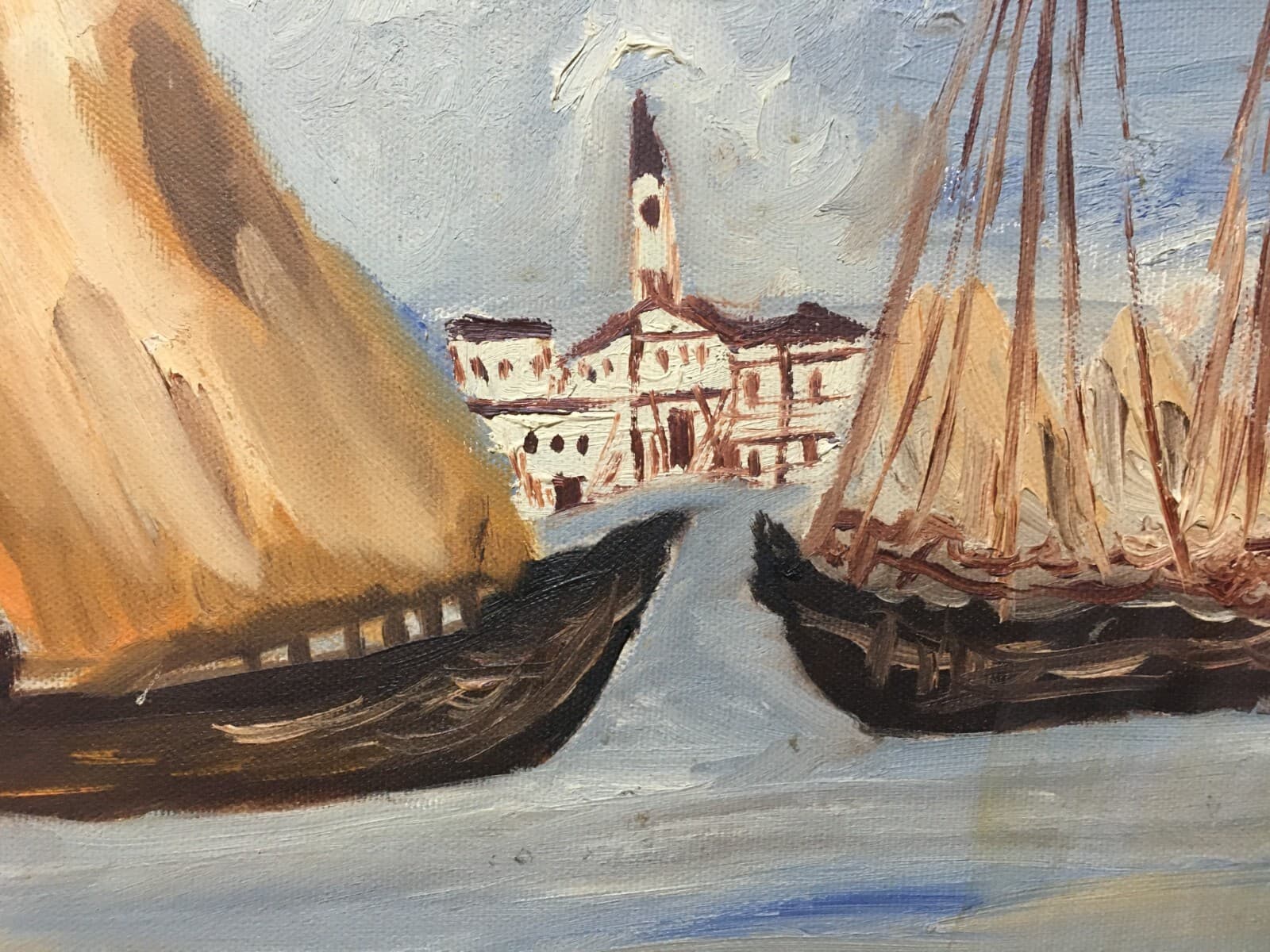 Arte Decorativa Del '900: Venezia, Veduta Del Canal Grande Dipinto Ad Olio