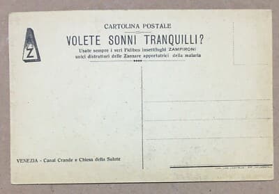 Venezia: Cartolina d'Epoca Pubblicitaria Zampironi Fidibus