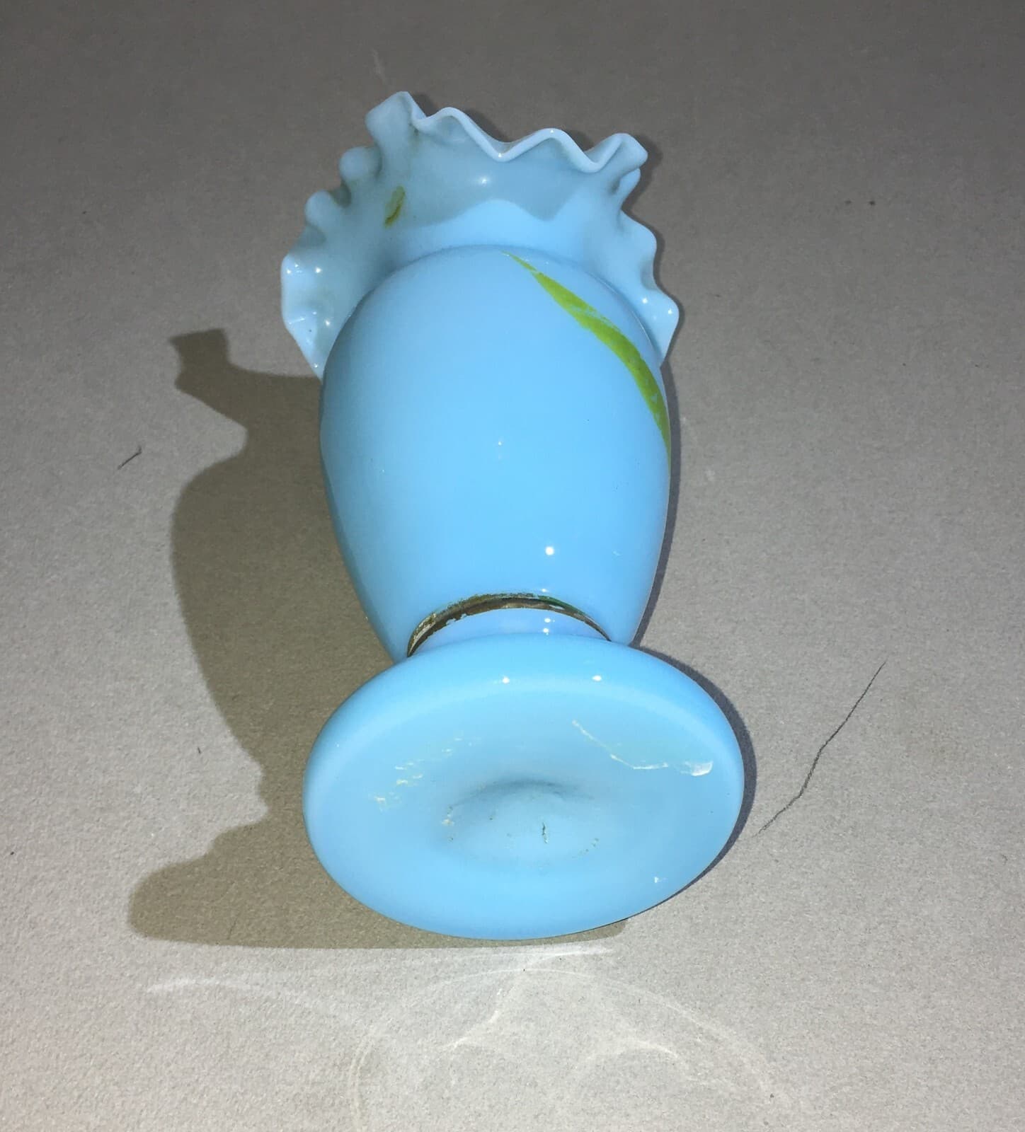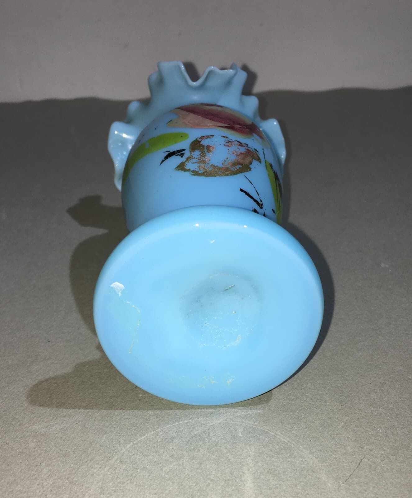 Decorativo Soprammobile Antico: Vasetto Portafiori In Opaline Celeste, Decoro Liberty