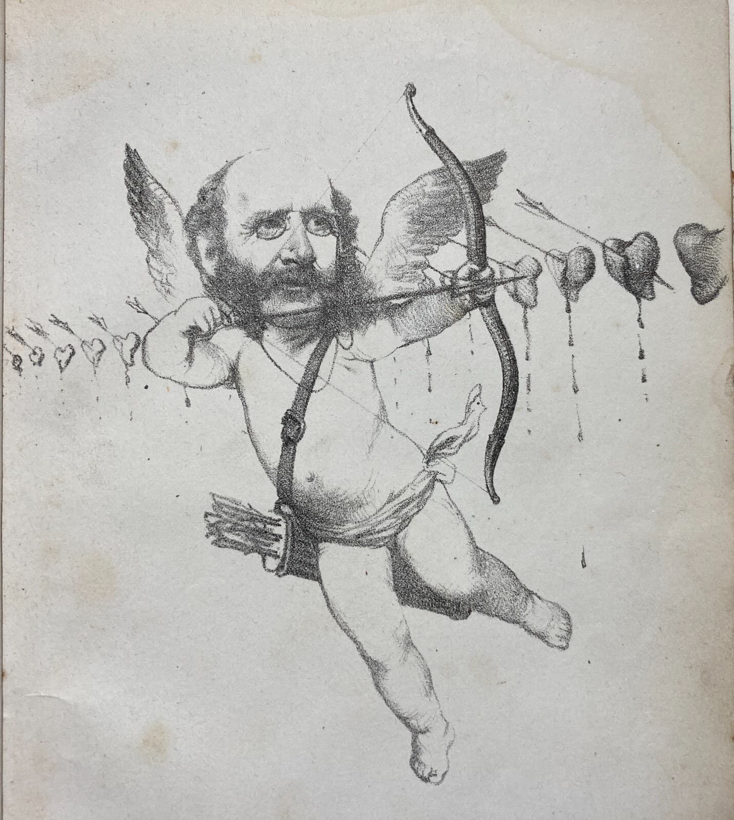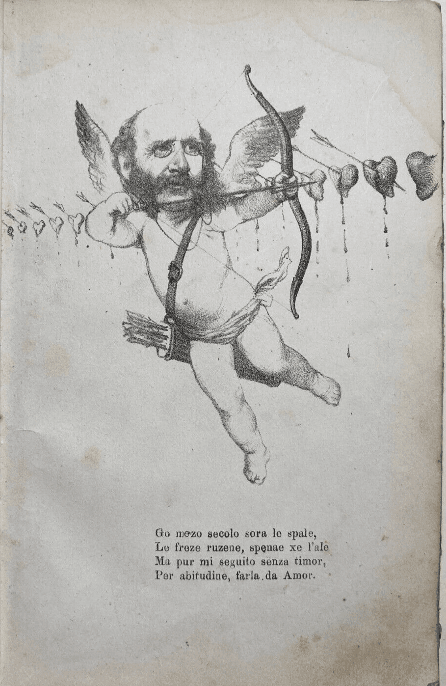 Caricatura, Satira, Venezia, Cupido: Antica Litografia Originale Dell'Ottocento