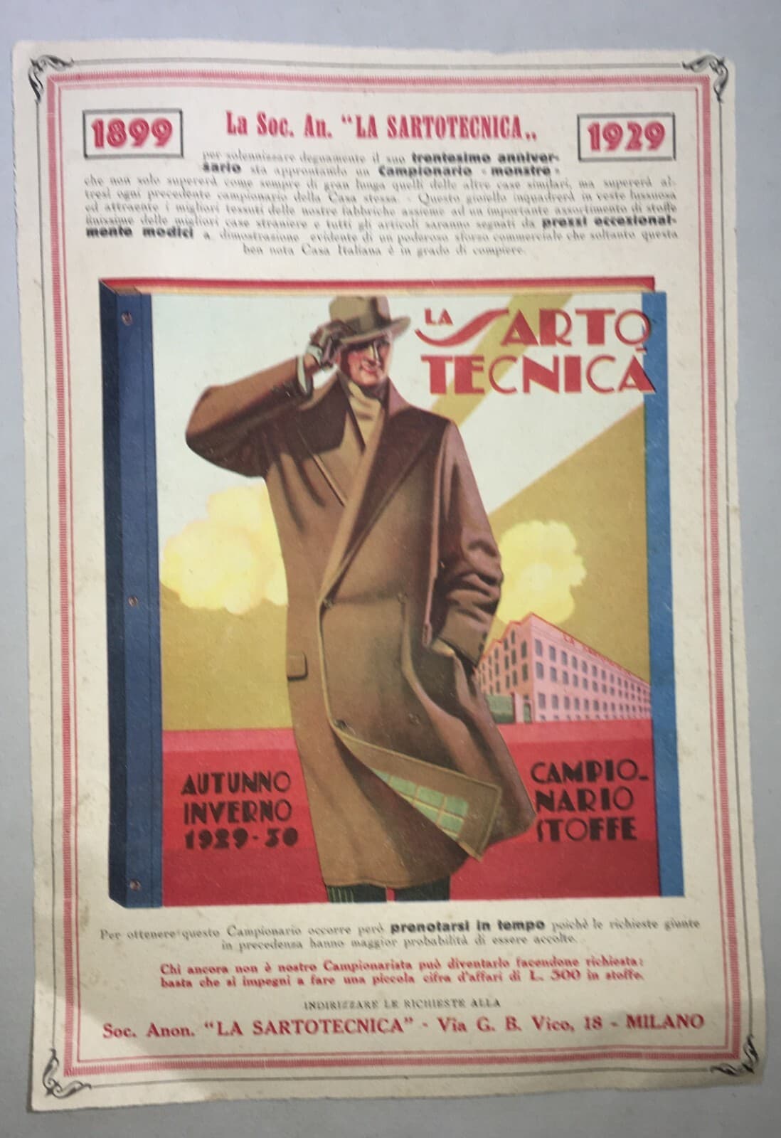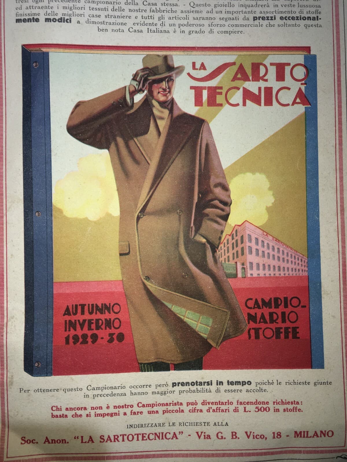 Moda Abbigliamento Maschile Milano La Sartotecnica Antica Pubblicità 1929