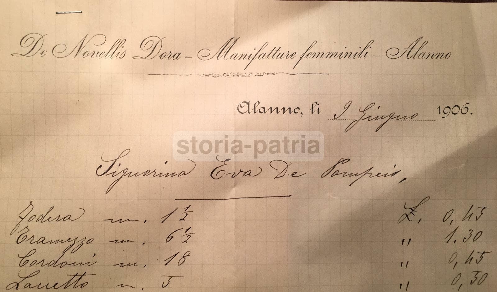 Abruzzo, Alanno, Moda Femminile, Sartoria De Novellis, Antico Foglio Intestato, 1906