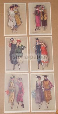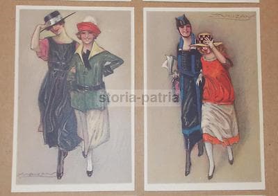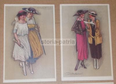 Arte: Artisti Illustratori Mauzan, Belle Cartoline d'Epoca, Moda, Eleganza, Liberty