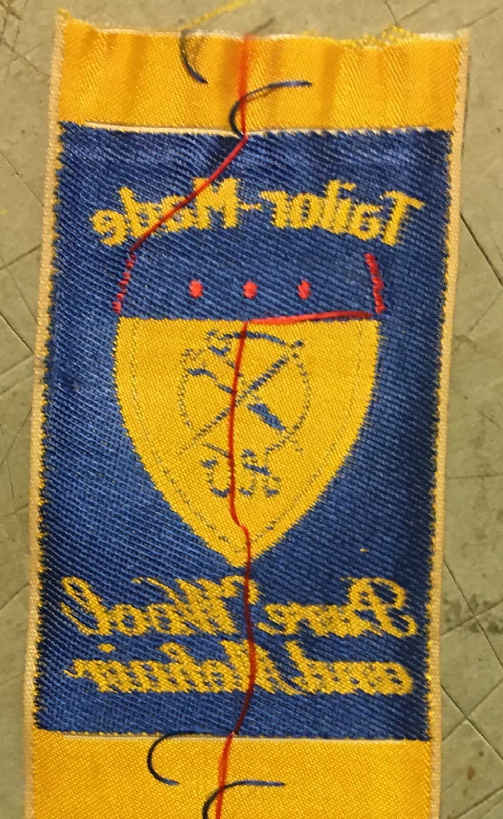 Etichetta Pubblicitaria Taylor Made In Tessuto Con Stemma Araldico
