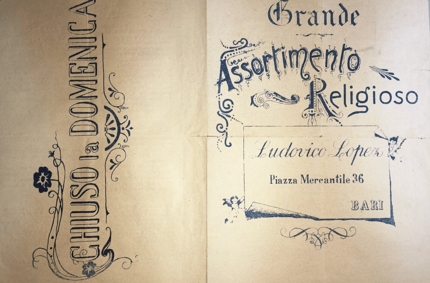 Puglia, Bari. Immaginette Sacre, Crocifissi. Listino Pubblicitario Antico Lopez