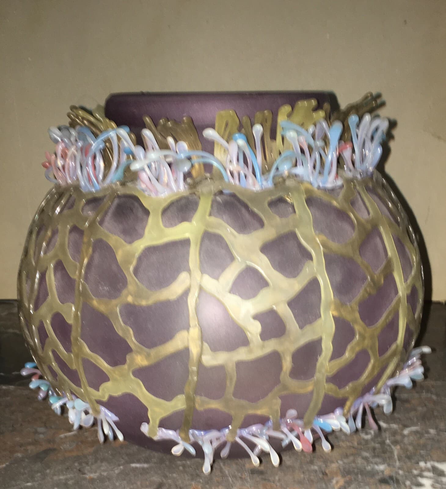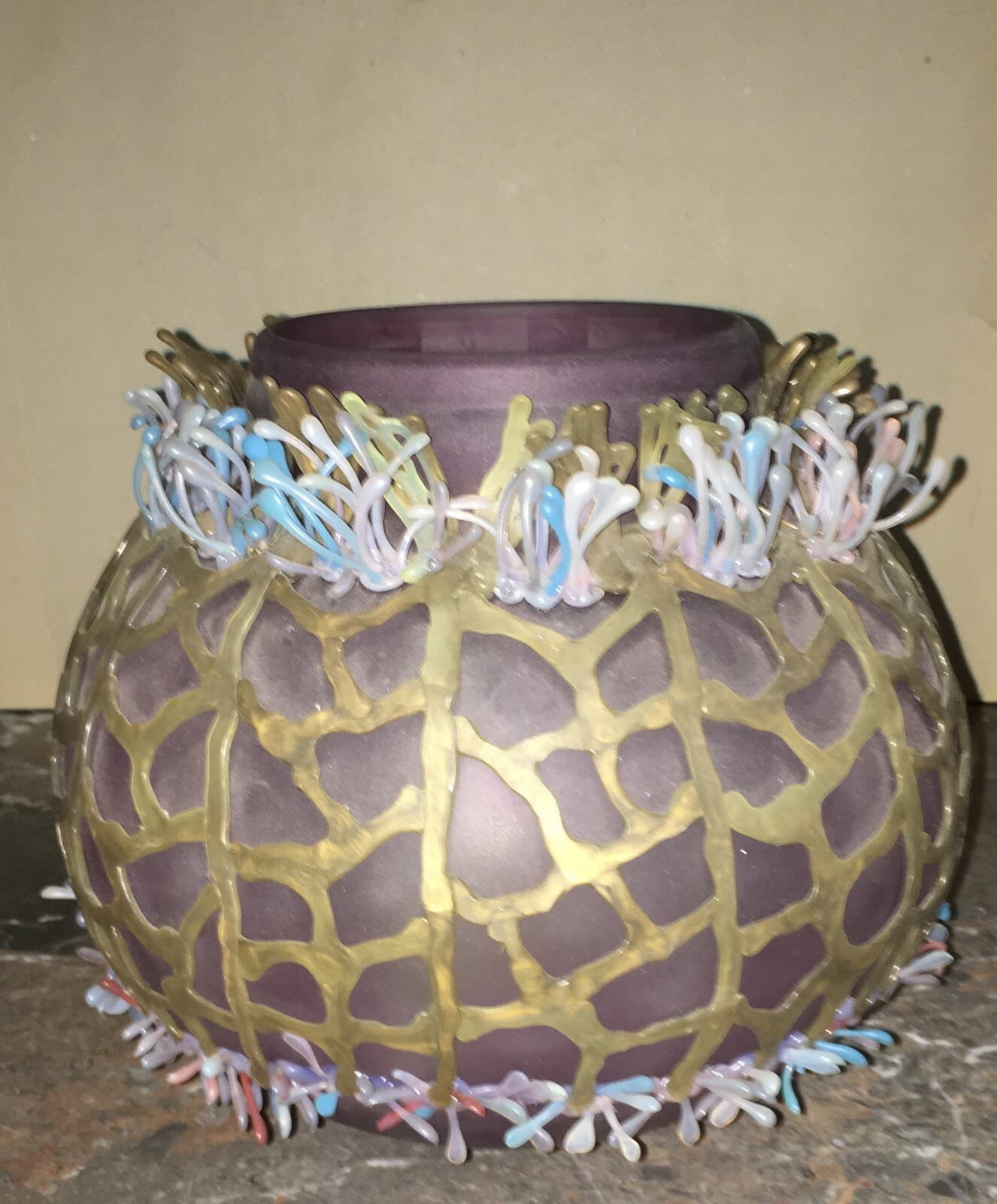 Vaso In Vetro Decorativo Con Laminazione Dorata A Motivi Vegetali