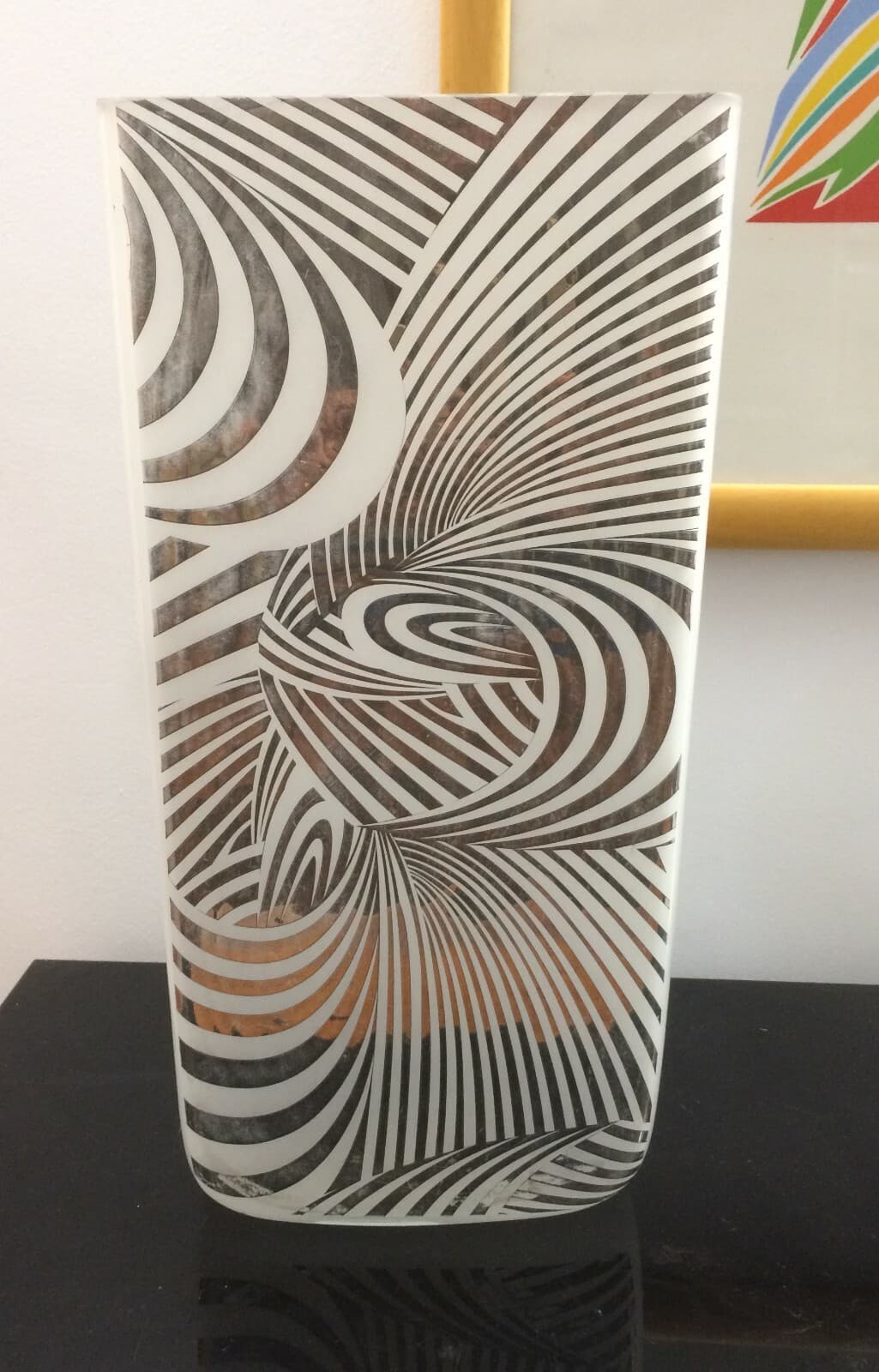 Vaso Decorativo In Vetro Opalescente E Laminato Argentato, Marchio Settimo Cielo