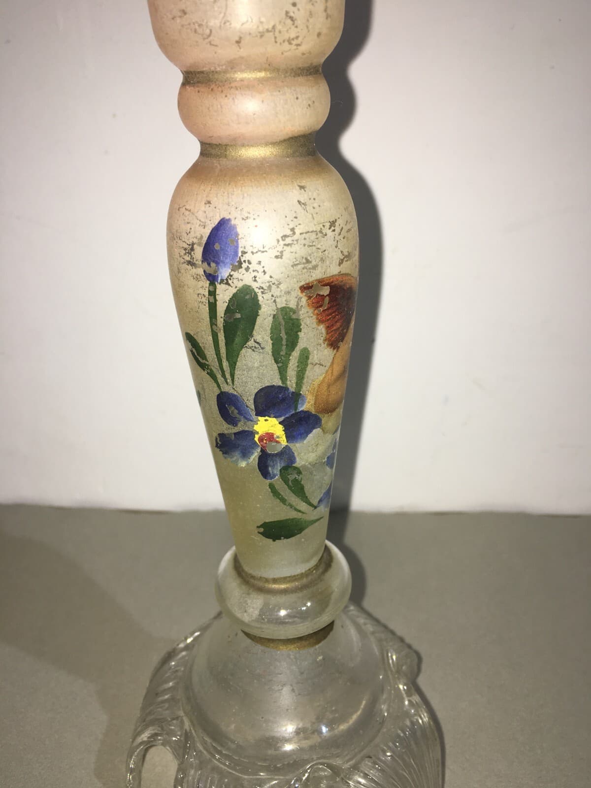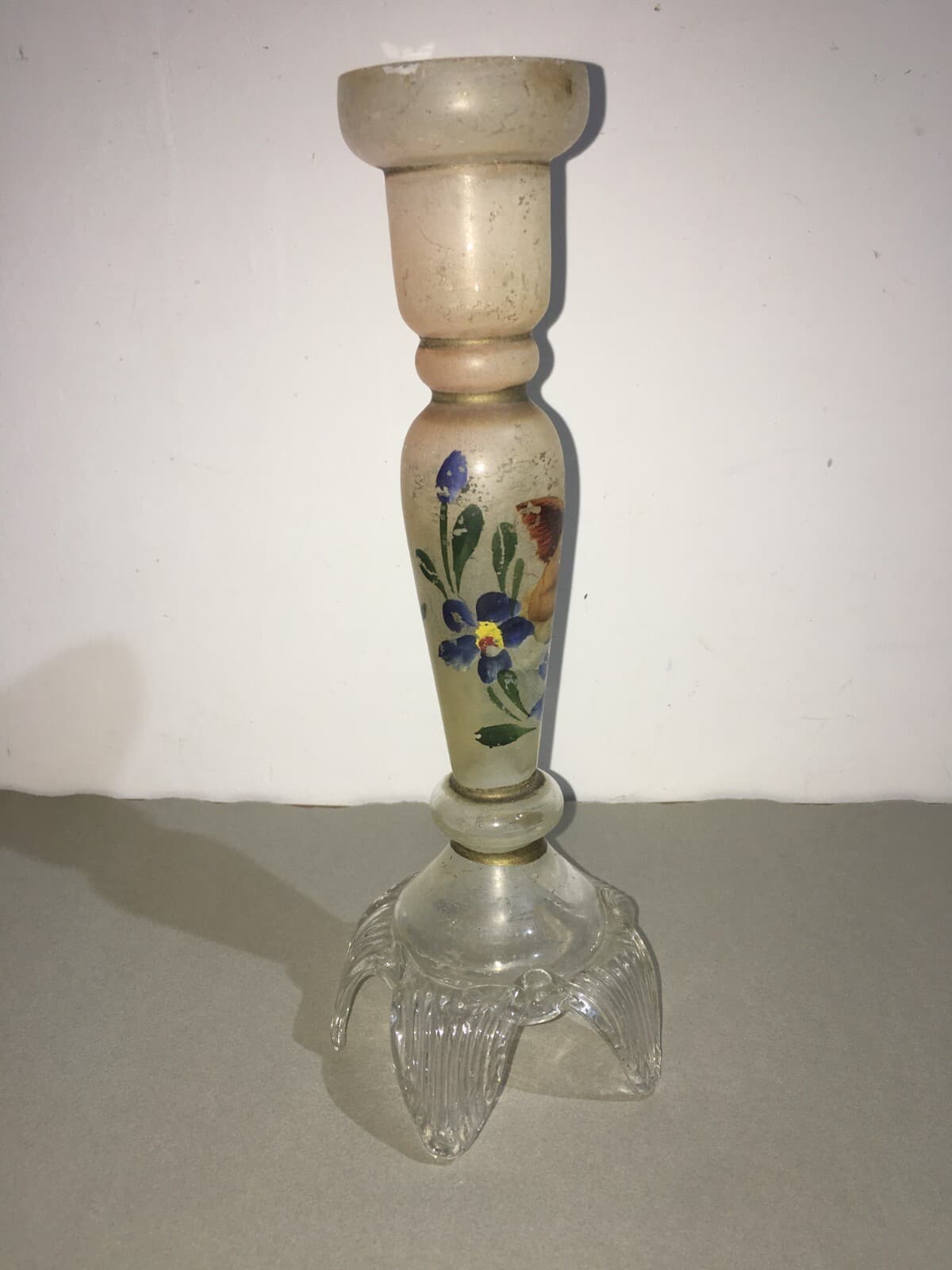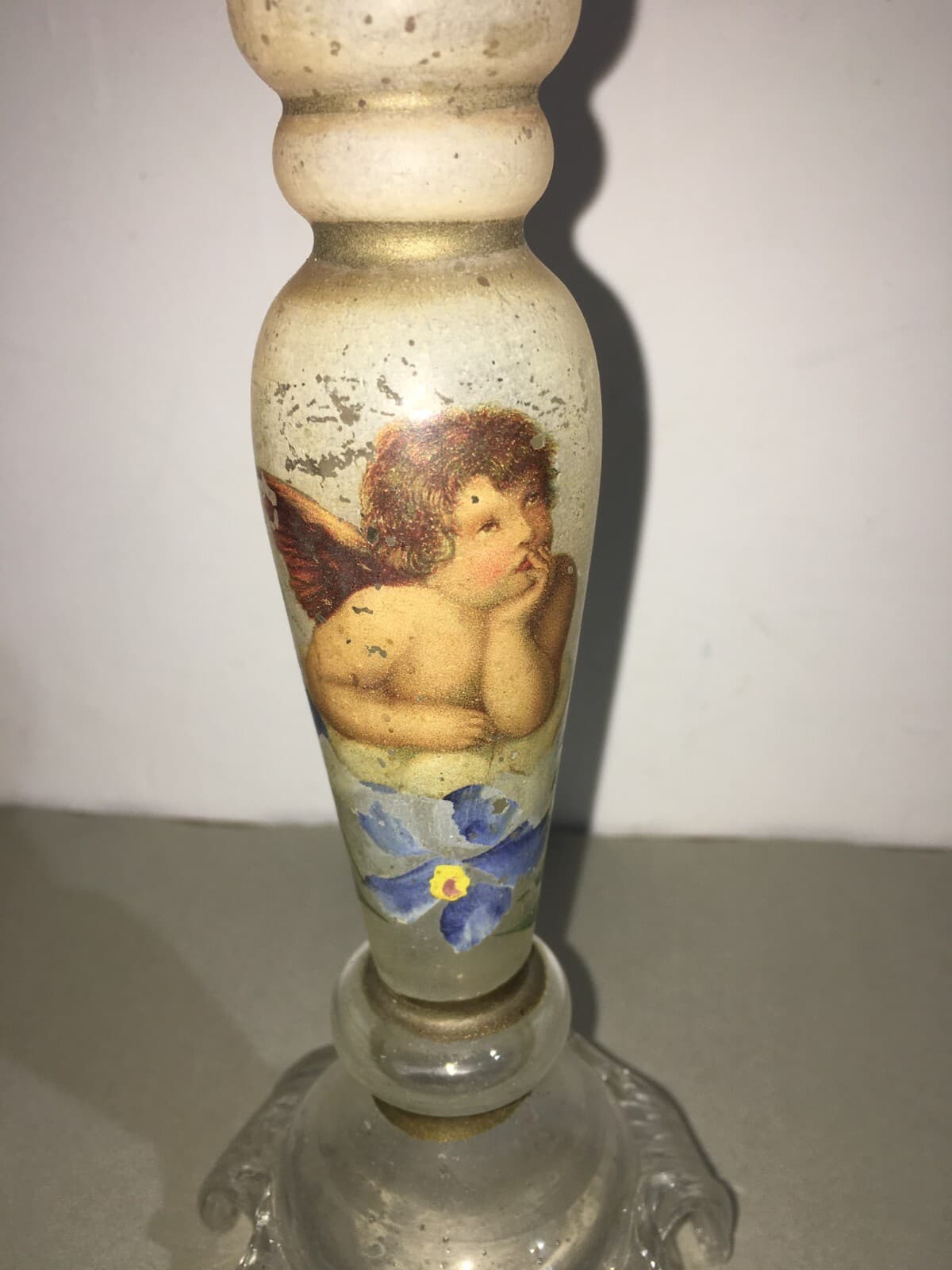 Candeliere In Vetro Decorato A Mano Con Motivi Floreali E Angioletto