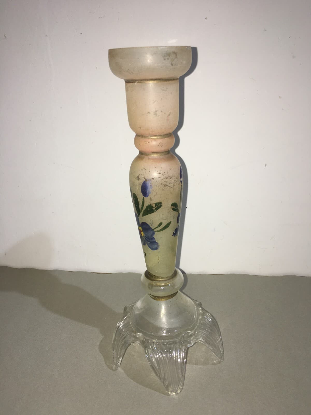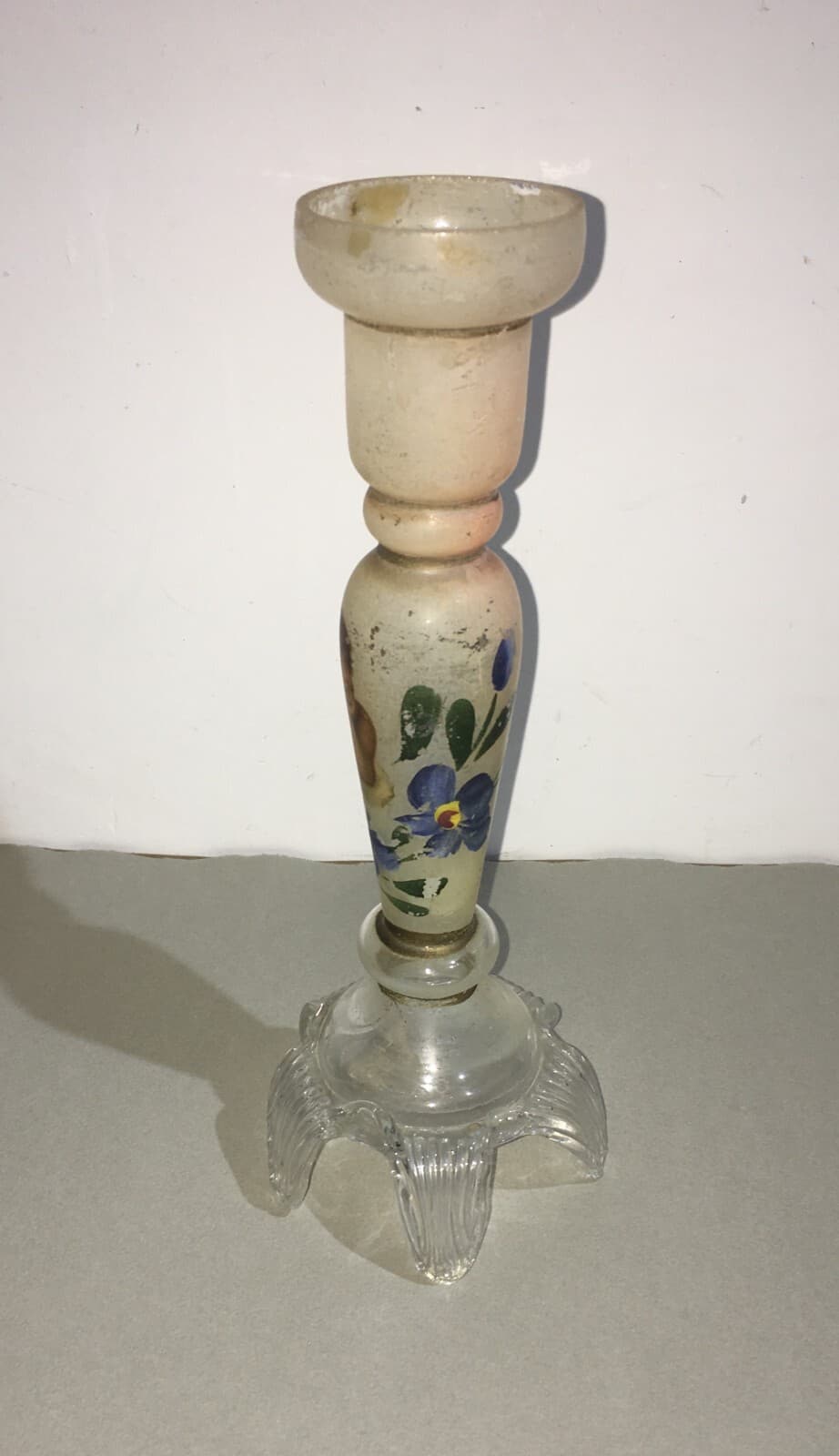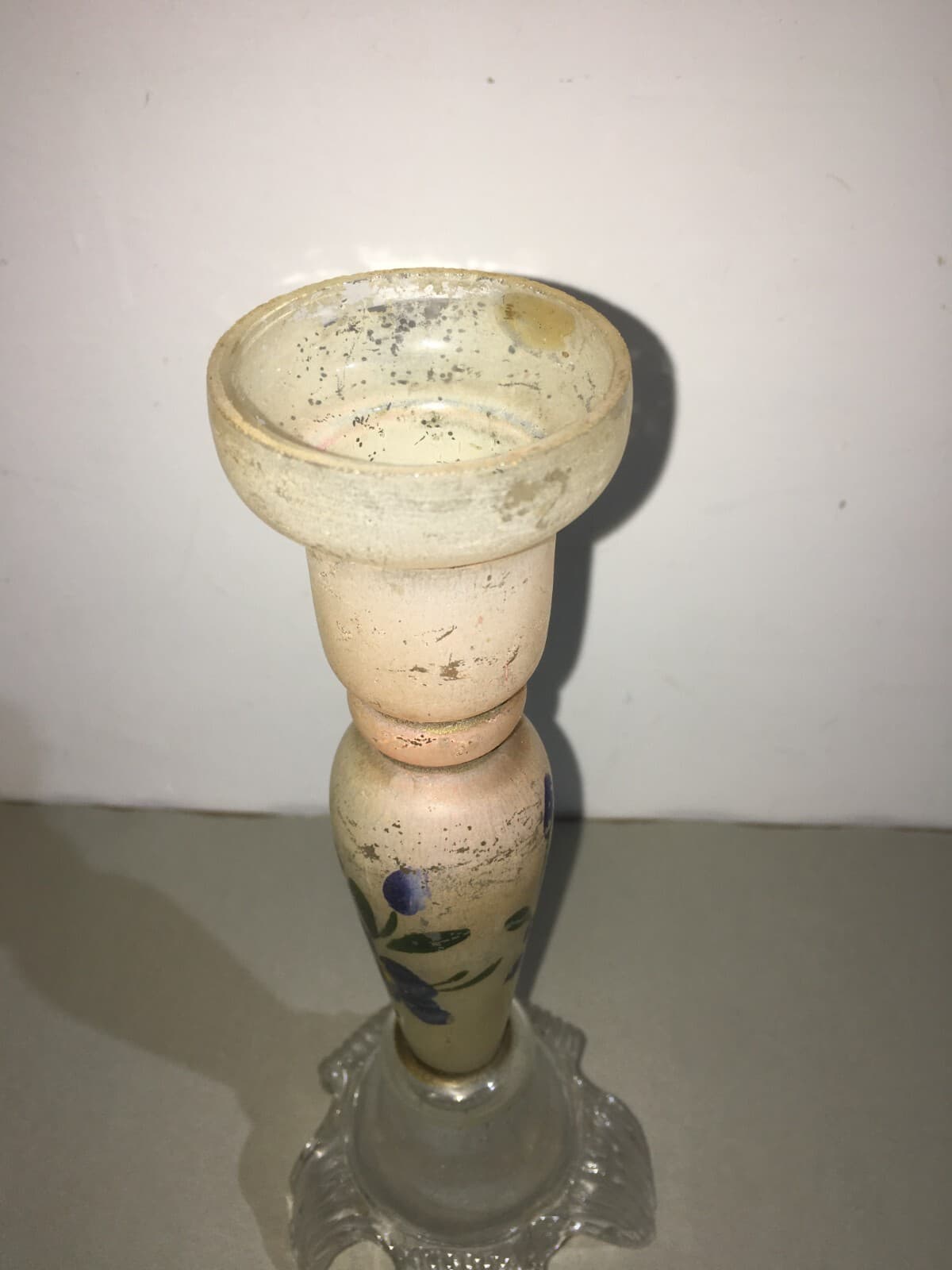 Candeliere In Vetro Decorato A Mano Con Motivi Floreali E Angioletto