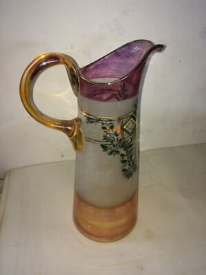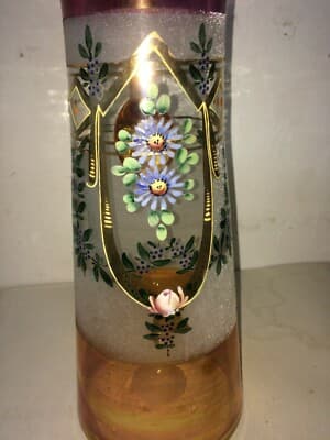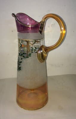 Caraffa Liberty In Vetro Soffiato Con Decori Floreali E Dorature