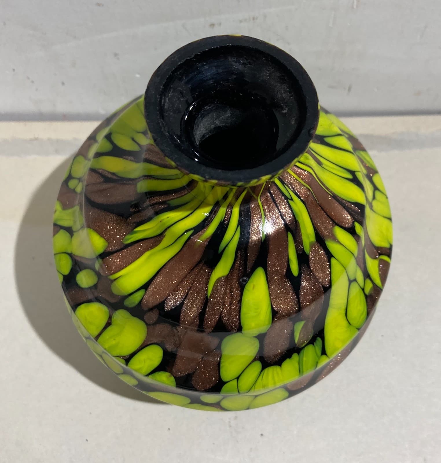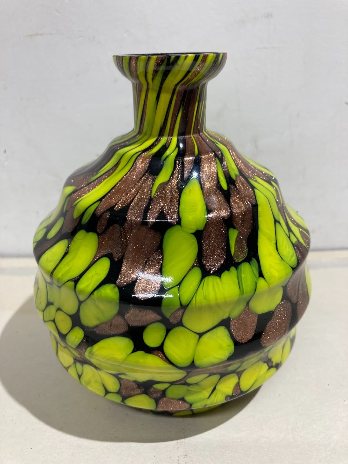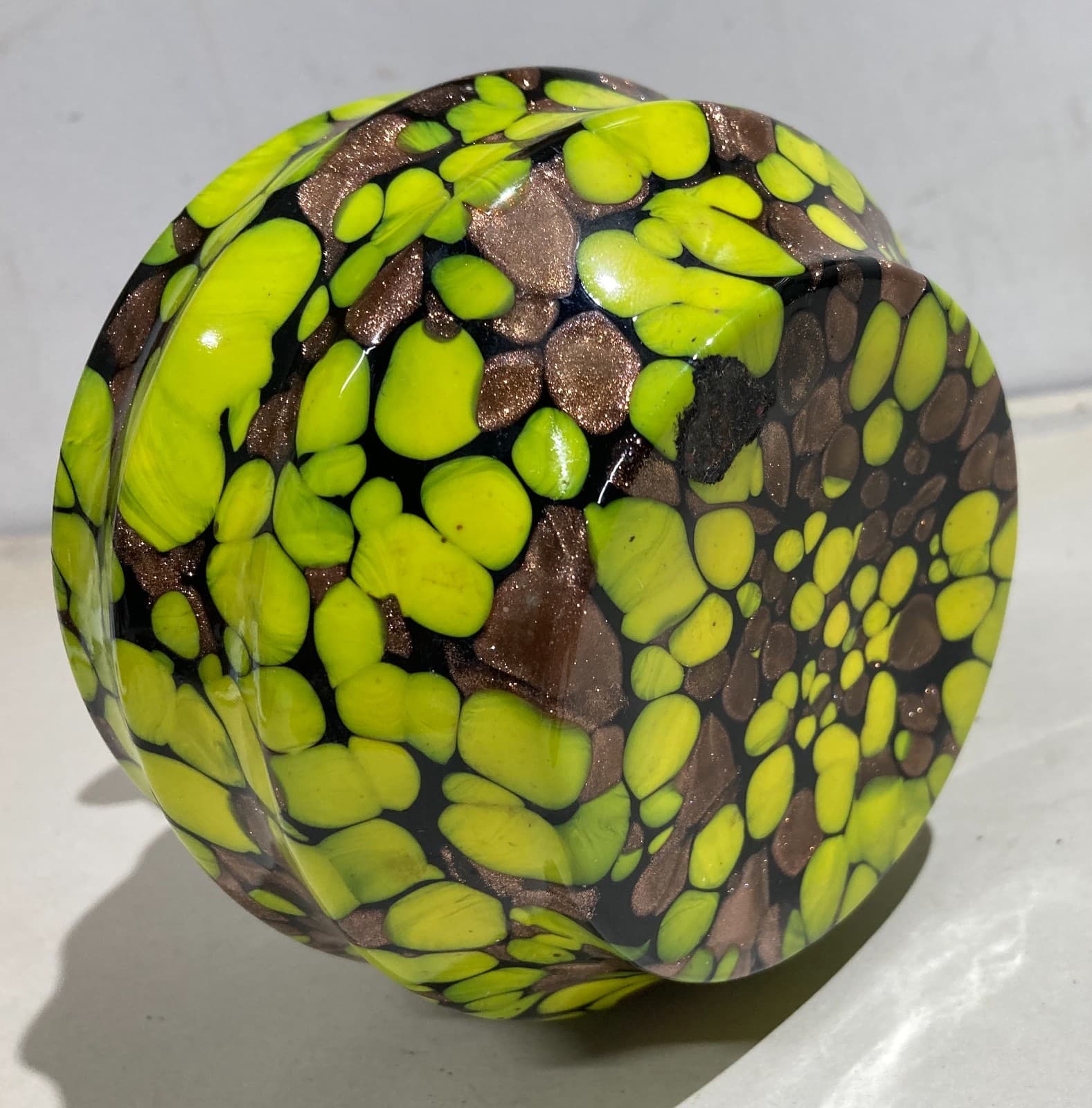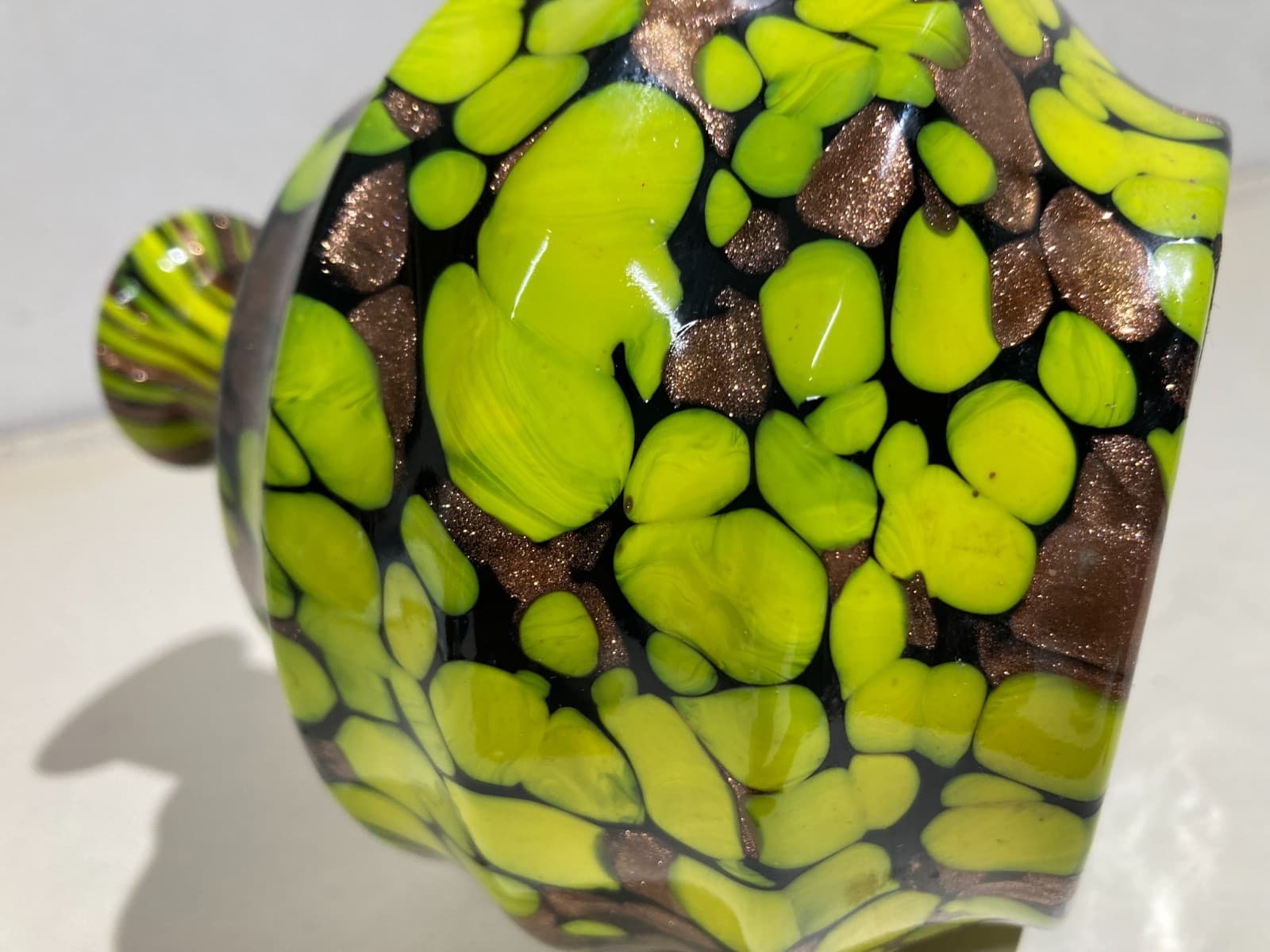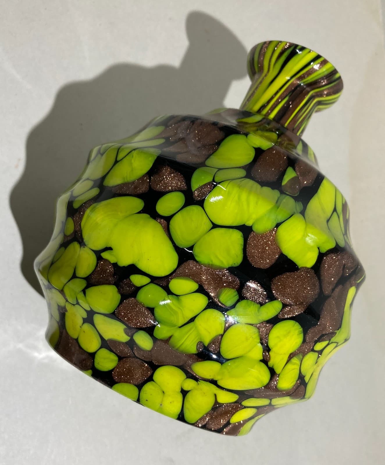 Vetri Da Collezione: Bottiglia Decorativa Con Inclusioni Gialle E Ramate d'Epoca