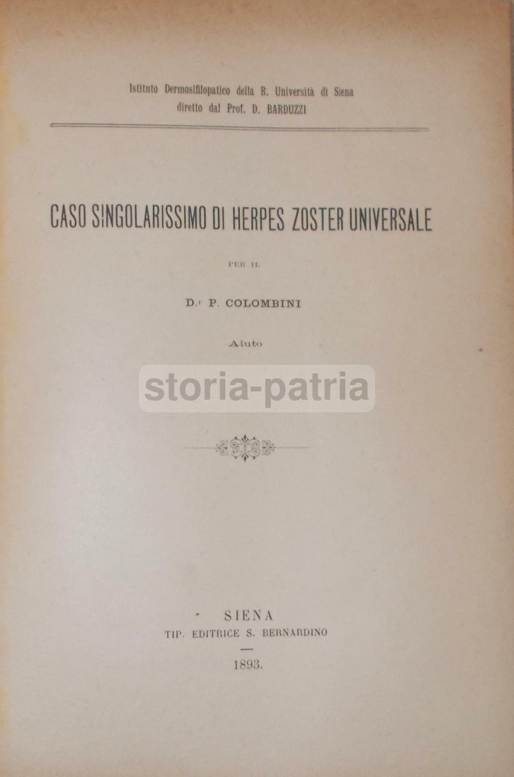 Medicina, Dermatologia: Herpes Zoster, Colombini, Con Due Tavole A Colori, Siena, 1893